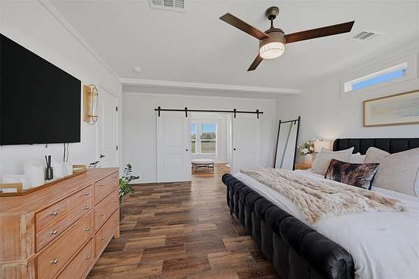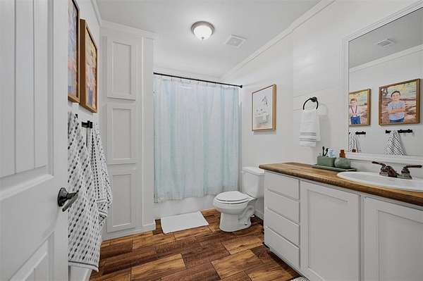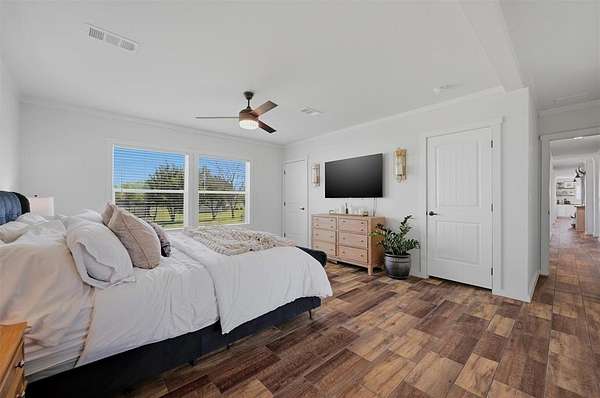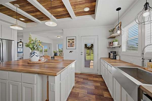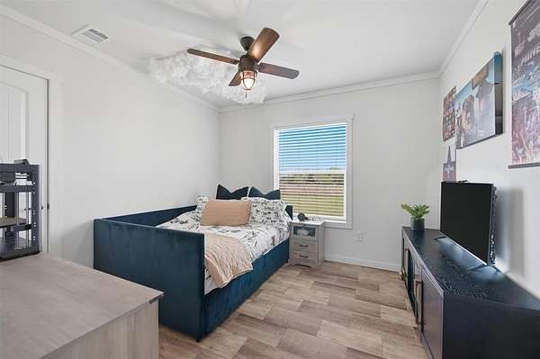 Welcome to 249 Mount Pleasant Road, nestled in the highly sought-after Mountain Springs area of Valley View, Texas. This stunning fenced 2.479-acre property features a 2,225-square-foot, manufactured home, perfectly blending charm and modern comfort. With four large bedrooms and two and a half baths, this home offers a spacious dining and open kitchen area, complete with an large island, stainless steel appliances, butler’s pantry and a large farmhouse sink. The expansive master suite boasts a generous bedroom with his and hers walk in closets. The spacious master bath has a custom shower and free standing soaking tub, dual sinks and beautiful windows throughout. The private mudroom entrance with storage is conveniently positioned between the family room and bedroom wing. The large family room is ideal for entertaining, and an abundance of windows fills the home with natural light. Enjoy a private, secluded setting, yet with easy access to Denton and Lake Ray Roberts. The level acreage is ideal for horses, a pool, boat, RV and many other possibilities. This home is filled with upgrades—decorative lighting, ceiling fans throughout, a gorgeous storage shed, a chicken coop, and more. Don’t miss this spacious, inviting retreat!