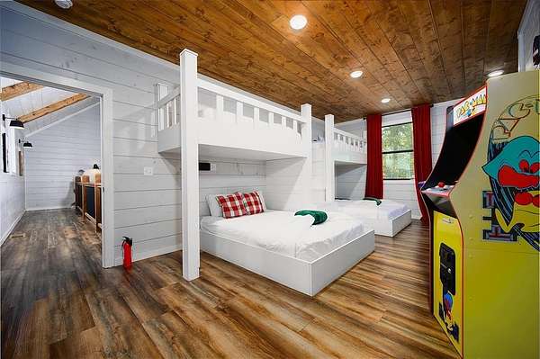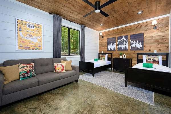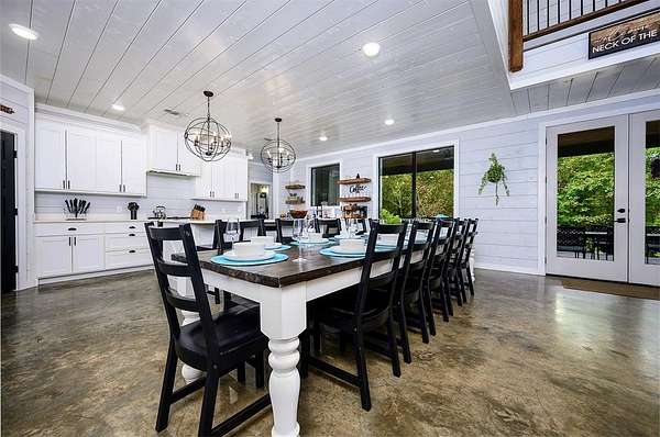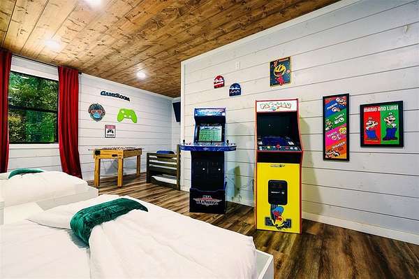 Nestled among the towering pines of Broken Bow, this exceptional 4-bedroom, 4-bath luxury retreat sits on a serene creek lot, where the soothing sound of flowing water creates a peaceful backdrop year-round. Designed for both relaxation and entertaining, the home features soaring vaulted ceilings, a dramatic stone fireplace, and expansive windows that frame the natural beauty outdoors while filling the space with warm, natural light. The open-concept living and gourmet kitchen area is perfect for gathering, complete with high-end appliances, custom cabinetry, and an oversized island ideal for hosting family and friends. Each of the four spacious bedrooms offers its own private ensuite bath, providing comfort and privacy for guests, while the primary suite serves as a tranquil escape with spa-like finishes and wooded views.There is a gameroom that's fun for the whole family. Step outside to an expansive covered deck overlooking the creek - perfect for morning coffee, evening cocktails, or unwinding in the hot tub beneath the stars. With lots of amenities for the whole family.Just minutes from Broken Bow Lake, Beavers Bend State Park, and the attractions of Hochatown, this home offers the perfect balance of luxury, nature, and lifestyle - whether as a private retreat or an income-producing investment property that did $120k in 2025.