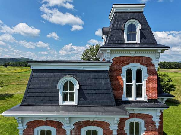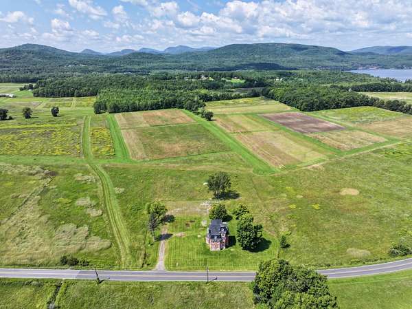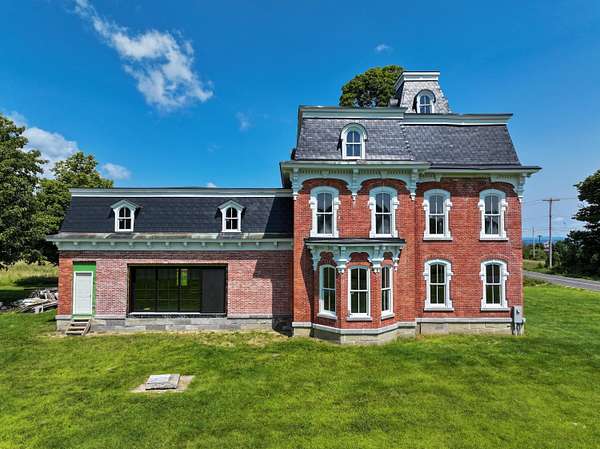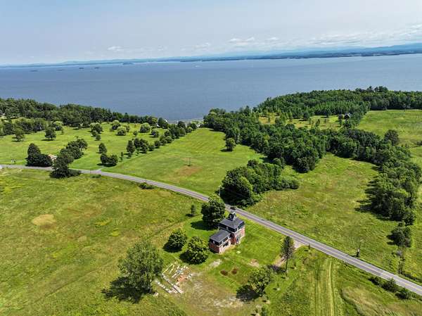 Set on 3 acres surrounded by open farmland, this Second Empire-style house, circa 1873, enjoys easterly views of Lake Champlain and westerly views of the foothills of the Adirondacks. The house beautifully reflects the hallmark details of its era, featuring mansard roofs, ornate brackets, and cornices around the hipped roofline, along with large rectangular windows. Inside, the symmetrical layout spans the first and second floors, each with large east-facing and central rooms, and a grand room on the west end of the building. The third floor includes two large rooms and a sitting area with windows overlooking the lake, as well as a stairway leading to the fourth-floor tower, which offers 360-degree views. The exterior of the house underwent significant restoration work between 2021 and 2023, including a new roof, restored cornices and brackets, and repointed brick siding. The large bluestone foundation has been reinforced, and drainage around the house has been improved. The interior is now a blank slate, ready to be restored to its former grandeur. All outdated materials have been removed, and the walls, ceilings, and floors have been reinforced and secured, ready for a new look. The expansive west-facing room on the first floor features large glass doors that bring the lush green landscape inside, creating an ideal space for a modern kitchen and living area that could seamlessly blend with the more traditional middle and east-facing rooms. Beautiful pocket doors still separate the two rooms. Additional spaces include a room for a library or office and a spacious bathroom. With over 5,300 square feet, this house offers endless possibilities, just waiting for your taste and imagination. List of improvements and 3D tour available on our site. Located close to two full-service marinas with seasonal restaurants both offer option to rent dock slips seasonally as well as winter storage.