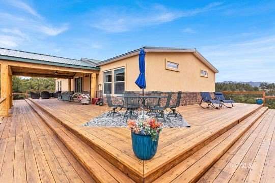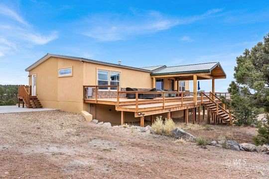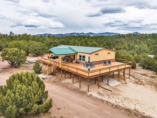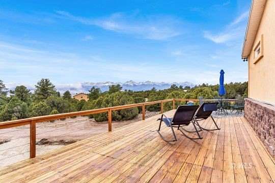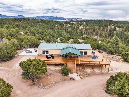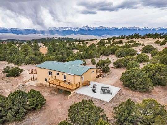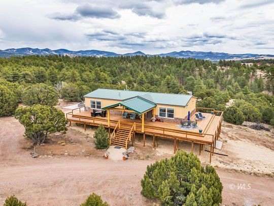 This one-of-a-kind mountain retreat was designed to capture breathtaking 360 views, including stunning panoramas of the Sangre de Cristo Mountains. A spacious 725 sqft wraparound deck surrounds the home, creating the perfect place to enjoy mountain scenery from sunrise to star-filled nights. The thoughtfully designed main level features 2 large master suites located on opposite ends of the home for privacy. Each bedroom includes an adjoining bathroom and walk-in closet, offering a luxurious mountain getaway. The open floor plan connects the living, dining, and kitchen areas, creating a welcoming space for gatherings. The gourmet kitchen features hickory cabinetry, quartz countertops, stainless steel appliances, a double wall oven, and gas cooktop. A large custom island and spacious pantry provide plenty of storage. Downstairs offers 1,860 sqft of unfinished basement space ready to be customized for additional bedrooms, living space, or recreation. The basement currently has a 1-car garage, and a concrete pad is in place for a future attached 2-car garage. Set among beautiful trees with year-round access from a county-maintained road. A beautiful Colorado mountain escape!