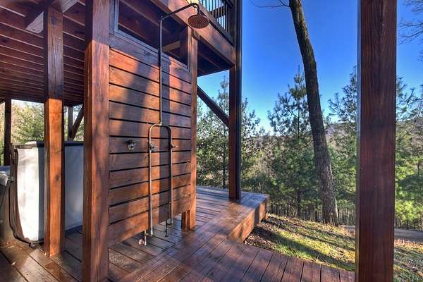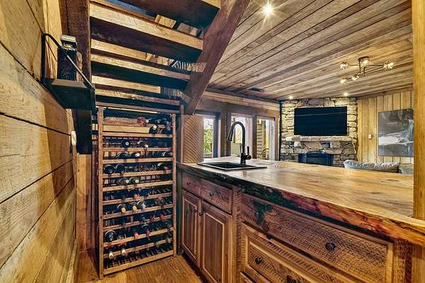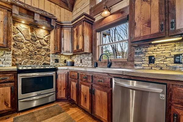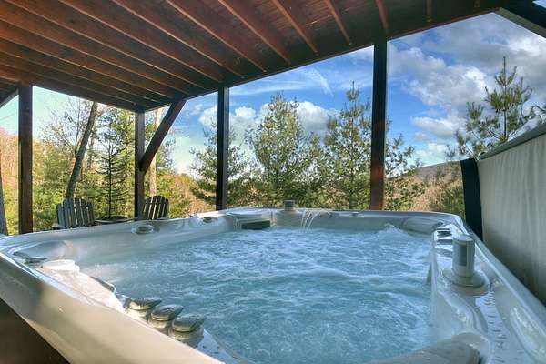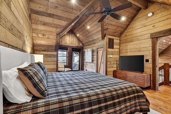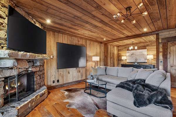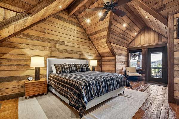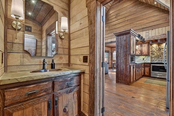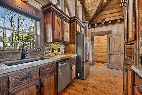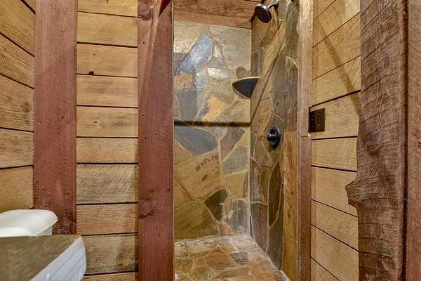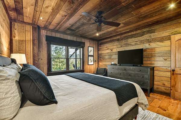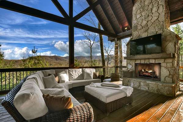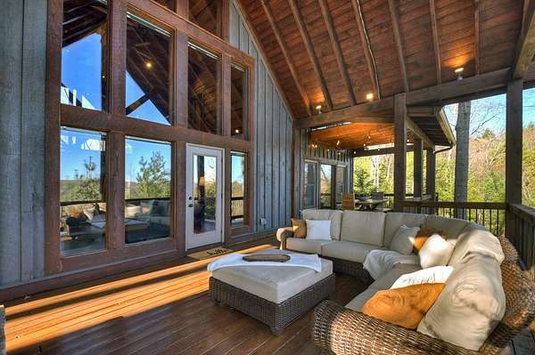 Experience the perfect blend of luxury, privacy, & breathtaking YEAR ROUND VIEWS in this stunning, PROFESSIONALLY FURNISHED, TURN KEY 3 BEDROOM/3.5 BATH custom-built Keith Sumner Mountain Retreat. Set on 3.2 acres of private mountain beauty, within a gated community, this home is just minutes from down Blue Ridge. This home offers it all—from ample parking & an oversized 2-car detached garage w/ large upstairs storage, to a striking exterior featuring stacked rock, wood, cedar shakes, board & batten, & a metal roof, all surrounded by METICULOUS LANDSCAPING. Enjoy an almost stepless entry leading to a covered rocking chair front porch w/ vaulted ceiling. Inside, the great room showcases a wall of windows capturing the views, circle sawn hardwood floors, a floor-to-ceiling rock gas log fireplace, & a cathedral ceiling designed to highlight the mountain backdrop. The kitchen is a showstopper w/ custom two-tone cabinetry, hardy stone counters, stacked rock & flagstone accents, & a unique covered bar area, flowing into a spacious dining area w/ modern lighting. Step outside to a dream outdoor living space w/ a wood-burning fireplace & plenty of room for relaxing or entertaining. The main level oversized master suite features stunning views, an ensuite bath w/ a flagstone shower and an actual rock waterfall to create a unique spa-like bath experience. Upstairs offers a second master suite w/ a private covered deck & an ensuite bath w/ a double vanity & oversized rock shower. The terrace level includes a wet bar, a large family/game room w/ a rock gas log fireplace, and a third oversized bedroom with a full bath. Outdoor living continues w/ a large covered deck featuring space for relaxing and a saltwater hot tub w/ massage jets, lighting & sound, an outdoor shower, & a large storage room w/ power, heat, and air, which has access from the deck. Previously a successful rental, this exceptional property offers the ideal blend of luxury, comfort, & investment potential.