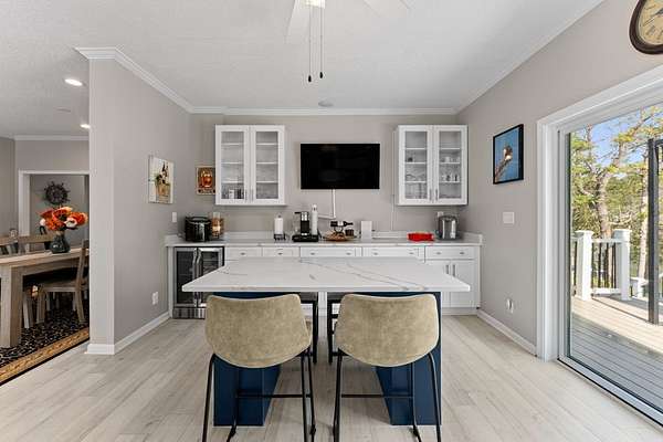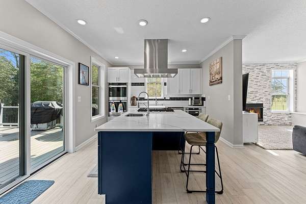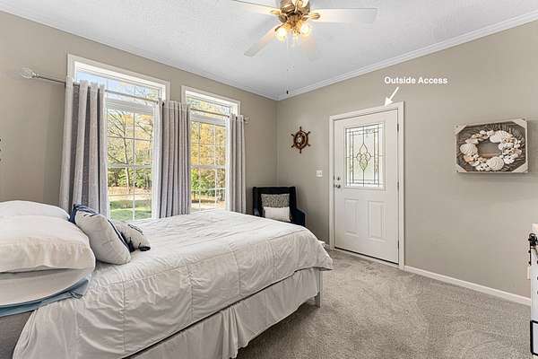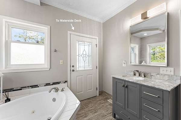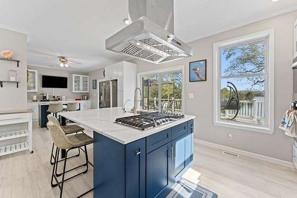 Completely remodeled home with 5 bedrooms and 5.5 baths on three levels overlooking Lowery Creek off the Corrotoman River! With huge views and a dock to 8' MLW, this property is perfect for boating/sailing enthusiasts, large families or those looking for a perfect STR. The versatile floor plan is well suited for a large family, multiple families or STR guests with a private third floor reserved for owners. The home can accommodate one level, open living on the main floor with a family room to include a gas fireplace, large dining area and waterside, gourmet kitchen to include two islands leading to a large waterside deck, waterside ensuite bedroom, two additional bedrooms, full hall bath and laundry room/half bath. The walk-out finished lower level offers addtional living space with wood stove, kitchen area, bunk room, full bath, waterside patio and oversized two car garage. The upper level boast a large living room with wet bar, two waterside ensuite bedrooms and a laundry room. With over 4 acres located outside of a flood zone, this property is rural, river living at its finest.