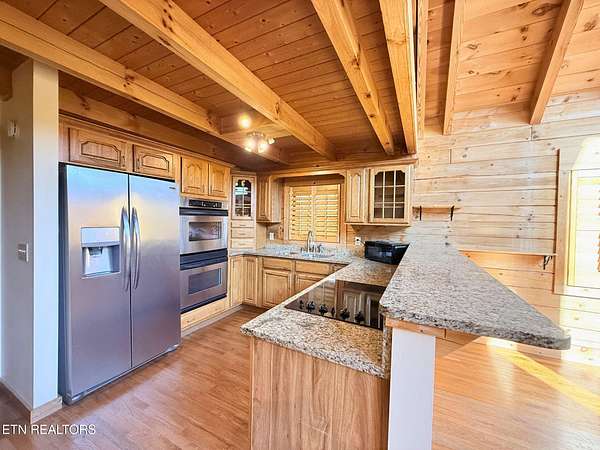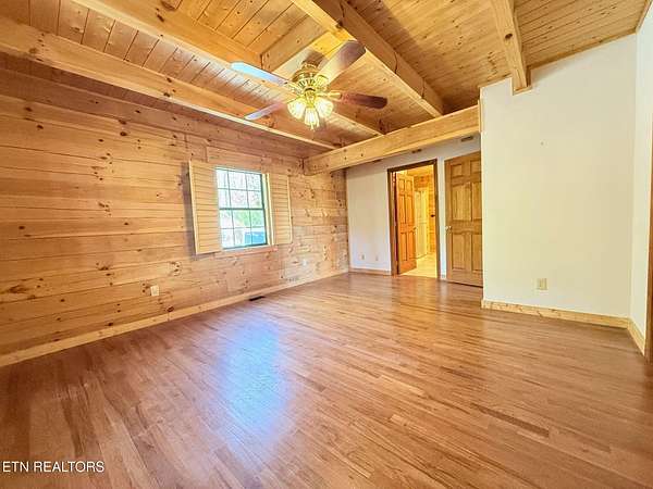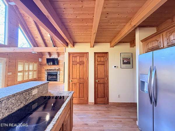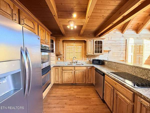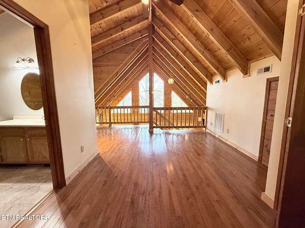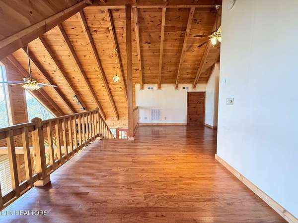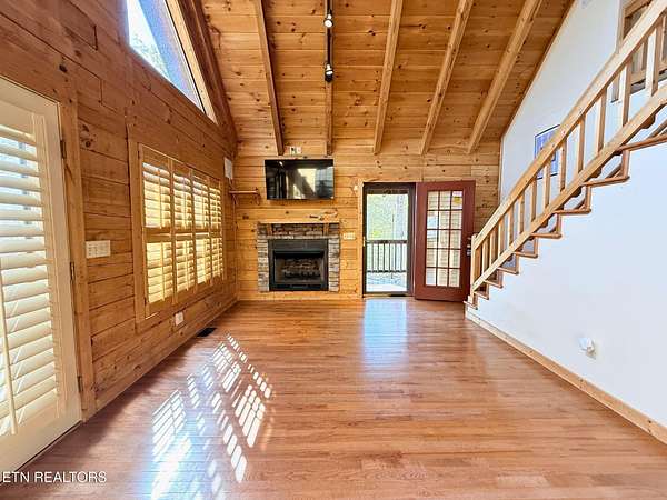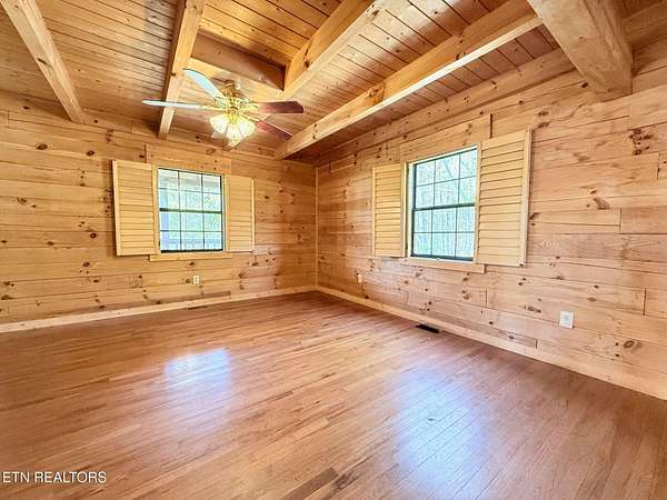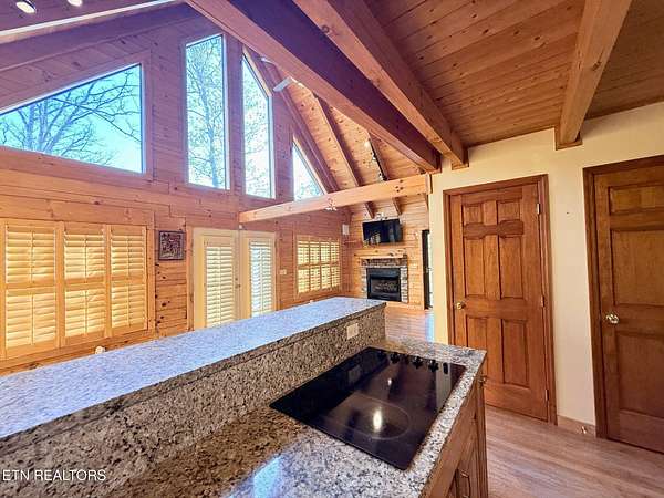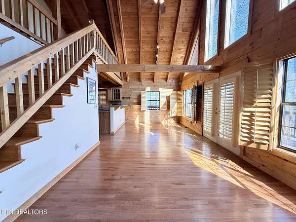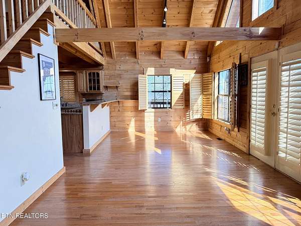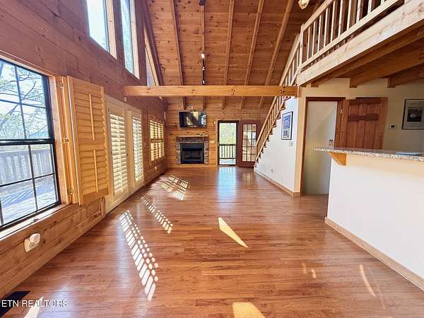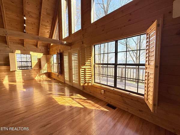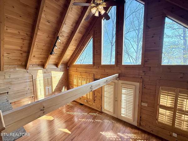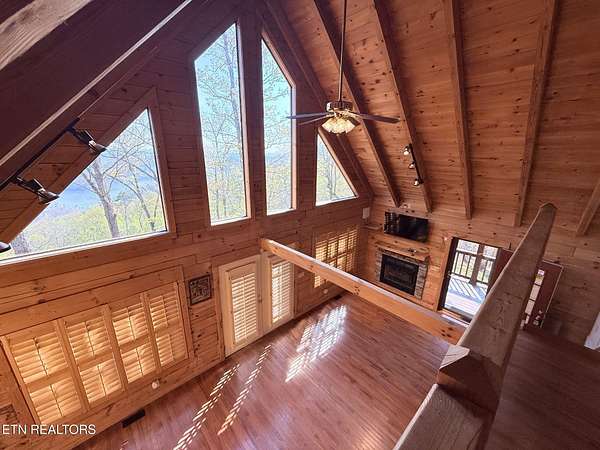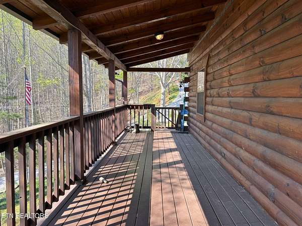 Private log cabin retreat near Norris Lake in New Tazewell, TN. Welcome to 249 Timber Creek Road-an impeccably maintained, never-rented log cabin offering exceptional flexibility as a full-time residence, vacation home, or short-term rental opportunity. Set on over 3 acres, this mountain cabin provides privacy with scenic lake and mountain views, while remaining just minutes from Norris Lake and popular marinas including Norris Landing, Straight Creek, Cedar Grove, Lone Mountain, and Beach Island Marina, along with nearby dining and a local golf course. Inside, the open floor plan features hardwood floors, expansive windows, and abundant natural light. The main-level primary suite offers comfortable one-level living, while the stone fireplace creates a warm, inviting space ideal for relaxing after a day on the lake. The lower level includes a spacious family or game room with walk-out deck access and an additional bedroom-perfect for guests. An oversized loft with a full bathroom provides flexible sleeping or living space, making the layout ideal for entertaining or maximizing rental potential. Outdoor living is a highlight with expansive wrap-around covered decks, perfect for enjoying sunrise coffee or sunset views over the lake and mountains. Additional features include stone features and garden spaces, fenced areas for pets or children, an oversized two-car garage, extra carport and boat or trailer parking, and abundant storage throughout. Residents enjoy access to two gated, owner-only Norris Lake access docks-Pebble Creek and Stillwater- offering first-come boat slips, PWC docks, picnic areas, water pumps, and a covered shelter. Short-term trailer storage is available in designated parking areas. A community center provides Wi-Fi, TV, gathering space, a lending library, and seasonal neighborhood events-allowing residents to be as involved as they choose. This thoughtfully cared-for Norris Lake log cabin delivers privacy, views, and proximity to everything that makes lake and mountain living in East Tennessee so desirable.