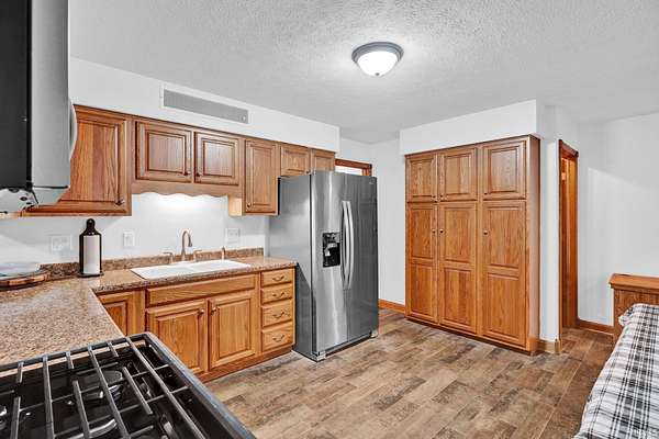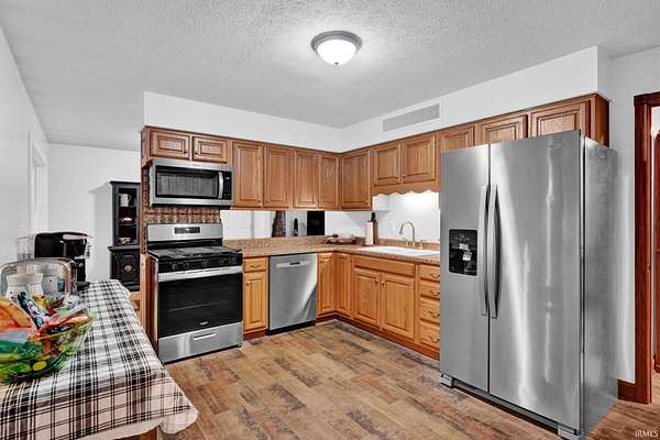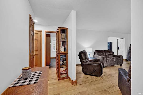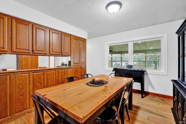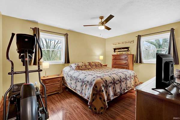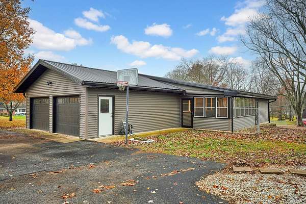 Welcome to this beautifully updated 3 bedroom, 3 full bathroom RANCH WALKOUT. Offering over 2,200 finished square feet this home of thoughtfully designed living space is on just under 2 acres with great proximity to 37! One of the standout features of this home, rarely found in newer construction, is the abundance of storage and oversized closets throughout, providing practical space that modern homes simply can't compete with. Major updates completed in 2020 include all new vinyl windows and doors, a durable METAL ROOF, and vinyl siding. Inside, you'll find recently remodeled upstairs bathrooms, featuring all new PEX plumbing, new vanities, a tub/shower combo, and a seamless stand-up shower in the primary en-suite. The kitchen has been refreshed with new countertops, brand new oven, microwave, and dishwasher, and a refrigerator just 3 years old. A newly built main-floor laundry room (2nd laundry downstairs) with a massive walk-in pantry showcases the home's superior storage capabilities, while the enclosed back porch now functions as a bright and relaxing sunroom. Newer flooring in select areas adds to the home's updated appeal. All bedrooms are generously sized and feature spacious closets, with the primary suite offering a truly massive walk-in closet. The walkout basement continues the theme of versatility and storage, with one half finished for recreation, featuring a full bath, and the other half offering multiple storage rooms, 2nd laundry hookup, and the opportunity for easy finishing to expand your living space. Outside, the full fenced-in backyard, 2-car attached garage, and 2-car detached garage provide even more room for vehicles, tools, hobbies, and equipment. Added bonuses include a water filtration system, water softener, a Ring camera security system with doorbell and four cameras, and a small shed with a dog door perfect for furry friends. Also included is a home warranty offered through Americas Preferred Home Warranty for peace of mind. If you've been frustrated by the lack of storage in newer builds, this home is a refreshing return to true functionality. Schedule your showing today!