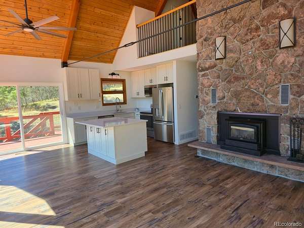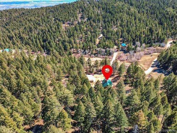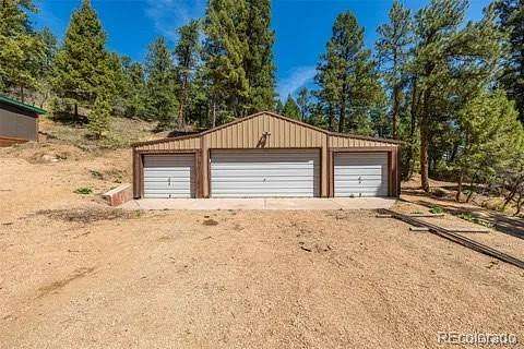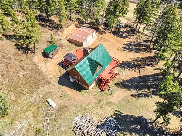Modern A-Frame mountain retreat on 6 acres backing Pike National Forest, abundant wildlife, and unmatched privacy!!! Bordering Pike National Forest and set on 6 private acres, this fully updated A-frame retreat offers a rare blend of modern design and Colorado mountain living. This one is the FIRST property that backs up to Pike and 100’s of miles of restricted land. Offering hiking, climbing, camping, four wheeling, horseback riding and wild life watching. World class fishing, canoeing and dirt-biking in Deckers, GMU 51 hunting and much more. DTC in 25 min and Castle Rock in 15. Defined by a dramatic wall of glass, vaulted wood ceilings, and an open-concept great room filled with natural light, the home is designed to bring the outdoors in. The renovated kitchen features quartz countertops, updated cabinetry, and a spacious island that anchors the main living space. Everything is updated! The flexible layout includes a loft overlooking the main living area, updated bathrooms, and a finished lower level for additional living, recreation, or work-from-home space. Additional features include a tankless water heater, backup generator, natural fireplaces, and a detached 4-car garage with wood-burning stove—perfect for vehicles, storage, or workshop use. Step outside to the expansive wraparound deck and take in peaceful forest views, frequent wildlife sightings, and unmatched privacy. Whether you're seeking a full-time residence or a private mountain escape, this property delivers a unique combination of design, setting, and accessibility—just a short drive from the Denver metro area.