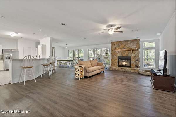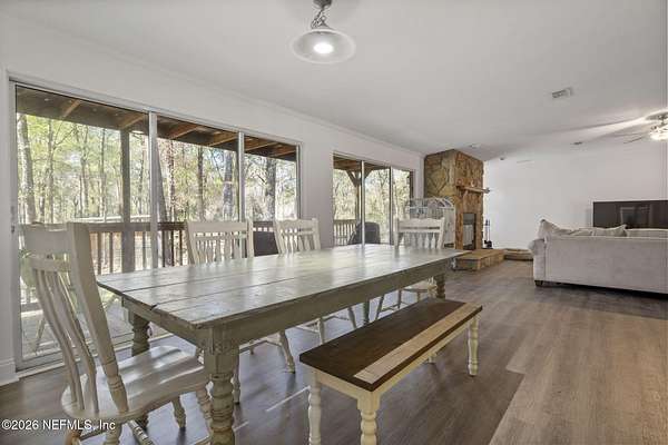 UNIIQUE PROPERTY AND RARE OPPURTUNITY. Close to seven acres backing to Jennings Forrest this 2,660 Sq home with a 1200 sq ft (2016) metal garage/building/workshop will have you amazed! This single-family home has brand new LVP flooring throughout and new neutral paint. The white cabinetry, huge breakfast bar and stainless-steel appliances compliment this HUGE kitchen and open floor plan. Each large bedroom has its own bathroom. Bonus room for an office or den. Also, a 3-stall barn, chicken coop and pig pen in the backyard for your farm animals. Sit back on your covered back deck and watch nature or enjoy the hot tub. The yard has a garden and greenhouse for fresh vegetable, herbs and plants. With this amount of space inside and outside you will always enjoy activities with friends and family. Homes like this do not come on the market very often. So, schedule an appointment, grab your boots and start enjoying the peace and tranquility you deserve.