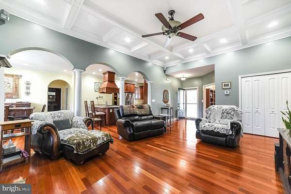 EXCEPTIONAL PROPERTY FEATURING A LOVELY ONE STORY HOME ON A FULL WALK-OUT BASEMENT. SPLIT OPEN FLOOR PLAN WITH MASTER SUITE ON ONE SIDE AND SECONDARY BEDROOMS/BATH ON THE OTHER. BEAUTIFUL COFFERED CEILING IN LIVING ROOM, PILLARS WITH ARCHED DETAIL AND FIREPLACE WITH WOOD BURNING STOVE INSERT. HARDWOOD FLOORS THROUGHOUT, SEPARATE OFFICE/DEN, LAUNDRY/MUDD ROOM, 1/2 BATH. MASTER SUITE HAS SITTING ROOM, GREAT PASTORAL VIEWS, DELUXE BATH WITH SOAKING TUB, WALK-IN OVERSIZED SHOWER, TILE AND WALK-IN CLOSET WITH BUILT-INS. BEDROOM #2 AND #3 ARE SERVICED VIA JACK-N-JILL BATH; EACH WITH A WALK-IN CLOSET. THE KITCHEN...GAS COOKTOP WITH POT-FILLER, TONS OF CABINETS WITH SOFT CLOSE AND PULL OUTS, WALK-IN PANTRY WITH FREEZER AND POCKET DOOR, GRANITE COUNTERS, DOUBLE WALL OVEN, MILET COFFEE, WARMING DRAWER AND MICROWAVE. .. A CHEF'S DELIGHT!!! THE FULL WALK-OUT BASEMENT HAS BEDROOM #4 AND BEDROOM #5 (OWNER USED AS A CRAFT ROOM), A FULL BATH, TONS OF STORAGE, 2ND LAUNDRY AREA...FULL SIZE WINDOWS WITH BEAUTIFUL VIEWS AND DOOR LEADING TO A LARGE PATIO. SCREENED PORCH, MAINTENANCE FREE DECK AND FRONT PORCH. THE BARN...5 STALLS CAN BE REINSTALLED IF NEEDED. FENCED PASTURES AND ROUND RING. LOT IS FENCED IN THE TREE LINE, GATED ENTRANCE, MANY MANY BEAUTIFUL FLOWERING TREES AND BUSHES.
