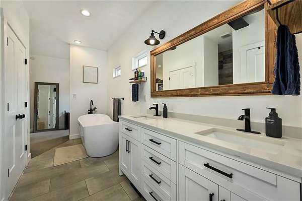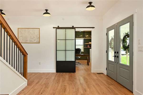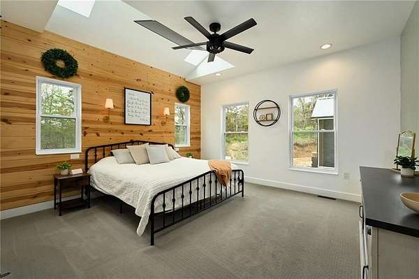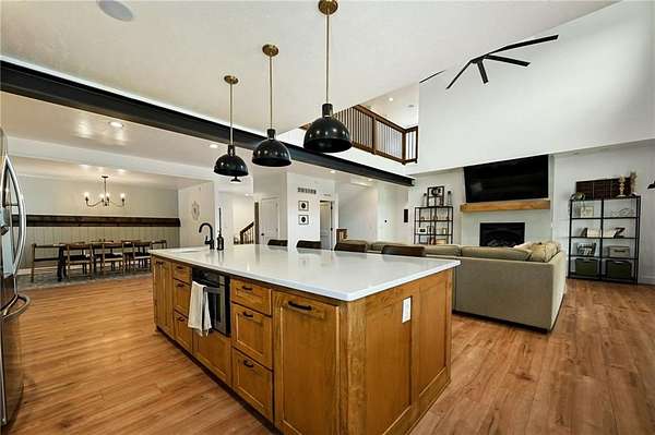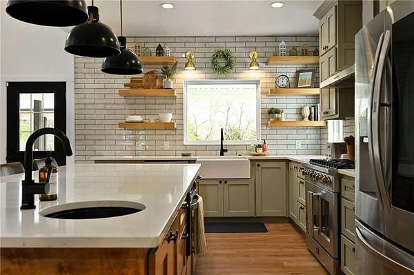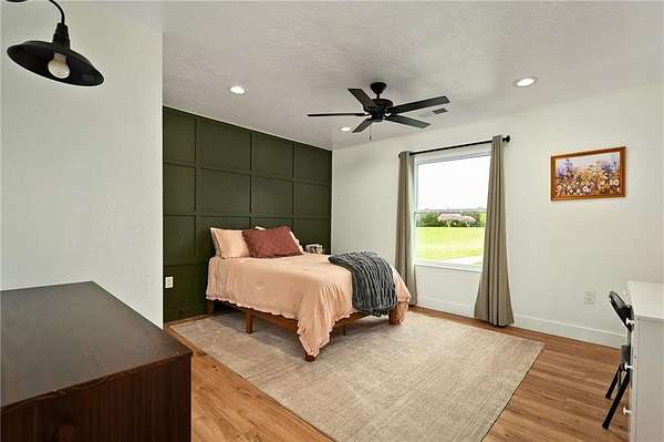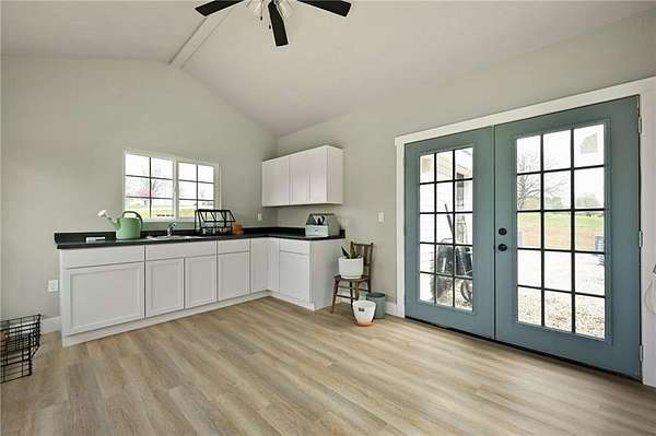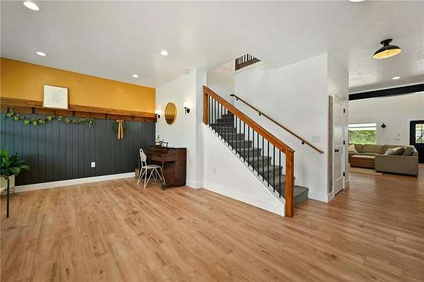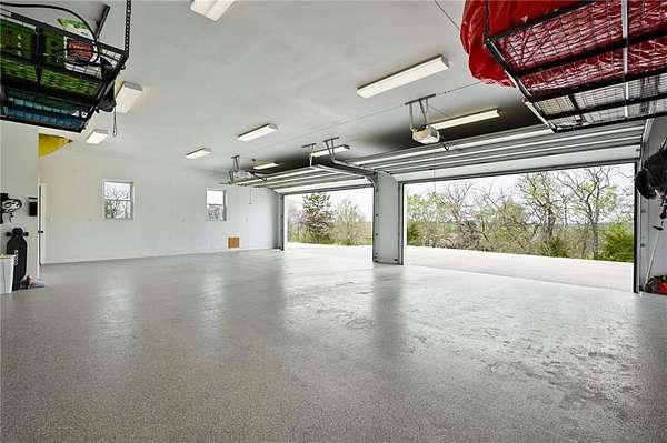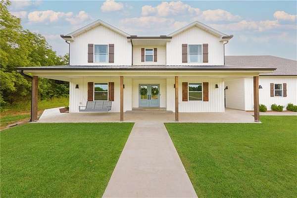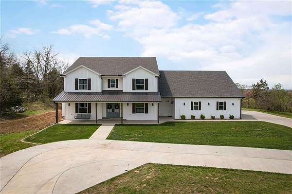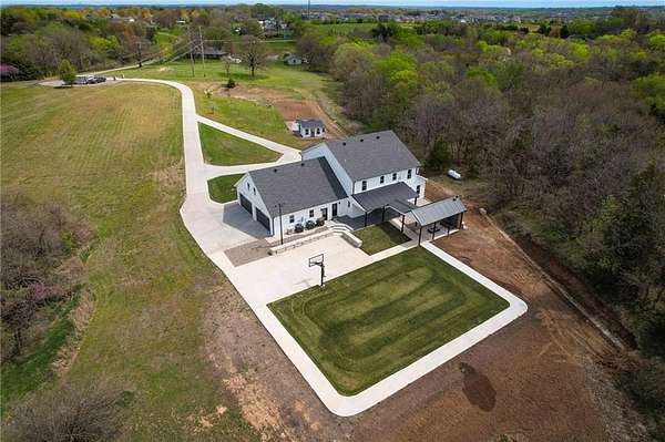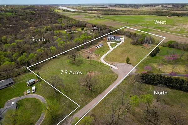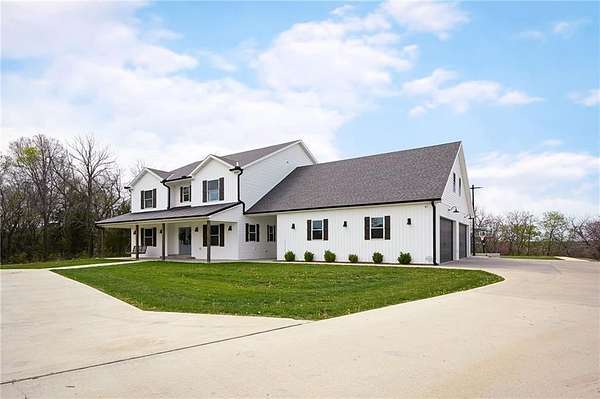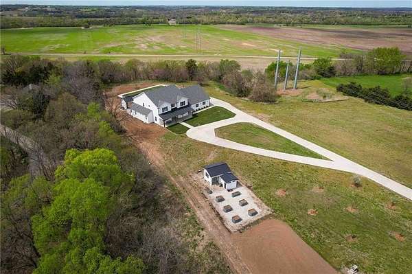 Back on the Market. No fault to sellers. New Roof and siding coming. Hail damage...so new buyer gets a brand new roof! Inspections are complete including septic. If you have been watching and waiting to make your move now is the time. Large Price Improvement. Built in 2020, this contemporary farmhouse sits on 7.89 acres. Located on the edge of Johnson County and Shawnee city limits, this unique property is perched on a bluff that overlooks the Kansas River bottom. 6600 total sq feet, open floor plan with custom touches and amenities, exposed beam, whole home audio system, large pantry, and lots of usable space. 4500 Sq ft above ground with so much to offer! Main level has an office, sitting/piano room, open living/kitchen area, fireplace, large laundry/mudroom, and primary suite with sky lights, a large bath/custom closet, digital shower, and additional office space. Upstairs you'll find 4 bedrooms, 2 full baths, a reading nook, a large play/toy room with a slide to the lower level, and an additional laundry room. The basement is 2100 sq ft and is fully finished with 2 additional bedrooms, 1 full bath, 9ft ceilings, and a large gym. The 1100 sq ft, well-lit garage is epoxied and comes with a wash tub and urinal. In the back yard you will find a covered porch that extends to a lower level with two fireplaces and a TV mount, a basketball/pickleball court with stadium lighting, grass with an in-ground sprinkler system and plenty of room for a pool. The front yard has a temperature controlled she shed, raised planter boxes, and a 10-tree fruit orchard, all on an automated water system. There is approx. 4 acres of available land for pasture/grazing along with a unique padded out area for a 50ft x 80ft+ shed/barn. The home also has a built-in fire sprinkler system, water softener, 2 water heaters (one is tankless), and whole home water filtration. Come tour today. This is a very unique property in an amazing location in Western Shawnee.
