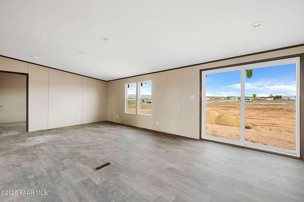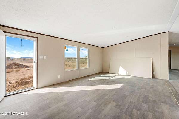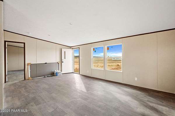Bring the horses as your new 5-acre property is fully fenced! Brand new PRIVATE 40 GPM well! Enjoy the amazing views from the large front & rear concrete patios which will be installed soon. Upon completion/back-fill the home will be ground-set and rock will be installed around the home and for the driveway/parking area. With 4 bedrooms and 2 baths this home offers room to roam covering over 1,800 sq ft. Construction will be complete and move-in ready mid December.
