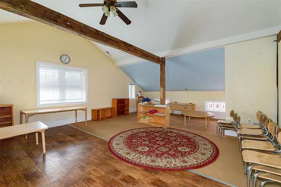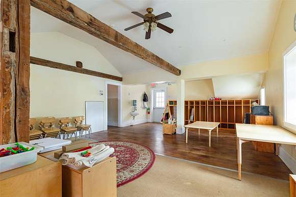 Currently operating as a daycare, the building features pristine hardwood floors, exposed wood beams, and a well-maintained structure that can easily adapt to a variety of commercial uses. Recent upgrades include a new roof, windows, siding modifications, boiler, high-end chlorination system, and external fire escape. The property holds an as-built permit and daycare usage permit issued in late 2024.