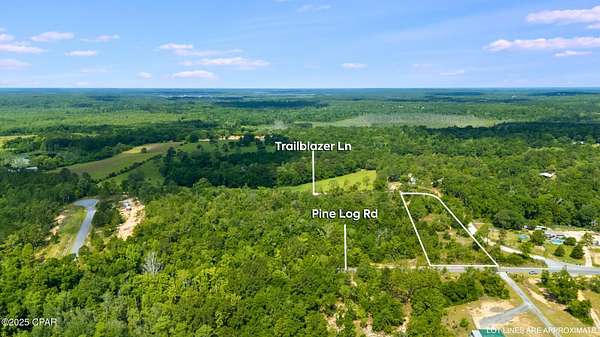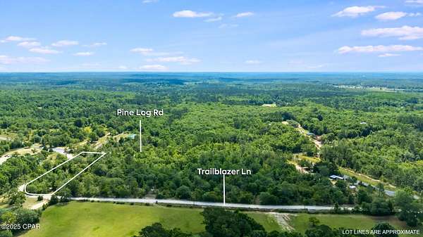 From Chipley, travel South on 77. Turn right onto Leonard Dr. Turn right onto Pine Log Rd. Property is on the left corner of Trailblazer Ln. and Pine Log Rd.