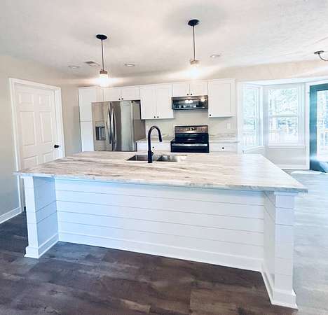 Make this modern craftsman-style home yours! Situated on 1.5 acres, close to city amenities and schools and allows for spacious rural living! This home welcomes you with a custom-built front porch with a brick step entry. It features a split floor plan, 3-bedroom, 2-bathroom design that has been fully renovated and is turnkey! The home has new engineered hardwood and carpet throughout. The living room allows for rest and entertainment with its open floor plan. The kitchen has an island with seating, breakfast nook, and has new wooden cabinets, granite countertops, and new appliances. The bedrooms are comfortably spacious and have new carpeting and generously sized closets. Master Bathroom has a walk-in shower and both bathrooms are tiled and have new granite countertops. An outdoor deck has been added to view the spacious backyard that allows plenty of room to enjoy the outdoors. On site is a 24x48 pole barn, small woodshed, small storage shed, and multi-purpose farm structure for chickens or small animals. The roof was replaced in 2025 with 30-year dimensional shingle. New central HVAC installed along with new windows for energy efficiency. Also, the home is equipped with tankless hot water heater for on-demand hot water. Property has circular drive for extended parking and convenience. Come and view this beautiful home and property today!