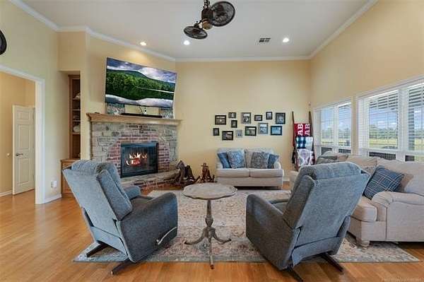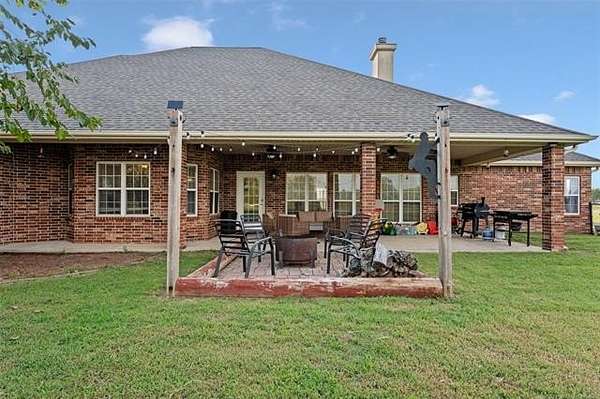 NEW PRICE! Full brick home on nearly 10 acres! With 3577 sq ft (source from courthouse records) of living space, this property offers room for everyone. Built in 2006, the home features 2 living areas, a formal dining room, and a butlers pantry. The kitchen is designed with function with abundant cabinets and counter space with a separate pantry. The split-floor plan highlights a massive primary ensuite, while the living room has a wood burning fireplace. Additional features include a 3 car garage with an in home safe room, a long circle drive, and a covered back porch for those prairie views. Newer updates include one of the HVAC units, dishwasher and the Roof replaced in 2020. With 5 bedrooms (or 4 plus a hobby room or office) this house is the 1 for large families or perfect for the in-laws to move in!
