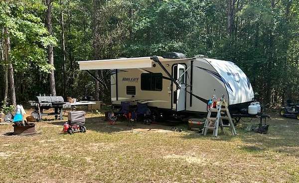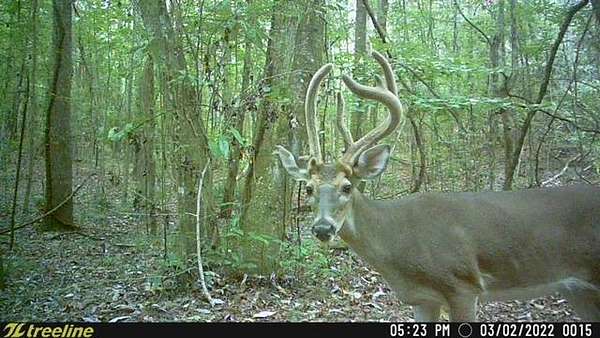 Well now, listen up! If you're looking for a little slice of heaven down here in the South, I got somethin' you're gonna want to take a look at. It's a beautiful 44-acre tract right up on the good hunting grounds of northwest Crenshaw County! This here land is set up just right. You got 'bout 25-acres of planted pine, and they're getting' thick enough to be thinned out, which means you got some money standin' on the stump! The rest of it though, that's where the magic is: mature hardwoods that are just gorgeous. Now don't miss the hardwood bottoms runnin' along the water! You got two waterways back in there. One's a seasonal branch, great for holdin' some mighty fine hardwood timber. But the real deal is the other one, a year-round creek called Mac Carter Creek. That's where the deer and turkey like to step out and grab a drink! And speakin' of game, the huntin' here is absolutely excellent. This area is known for havin' some big, healthy whitetail deer, and you'll find plenty of gobblers, too-some fine Eastern turkey strutting around. The best part? Someone's already done a heap of the work for ya. There's a nice camper already in place with water and electricity hooked up. You can pull in, drop your bags, and be sittin' in a stand before the sun sets. Plus, you got public road frontage for easy access. Come on down and take a gander, you won't be disappointed!