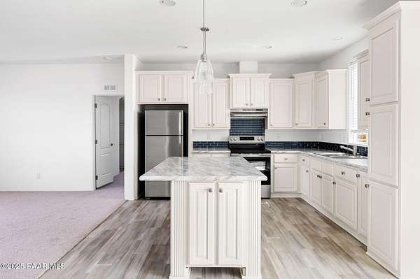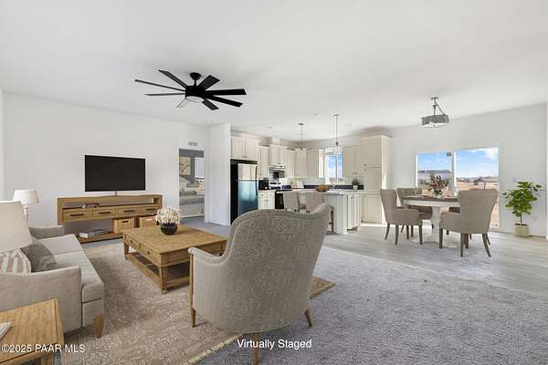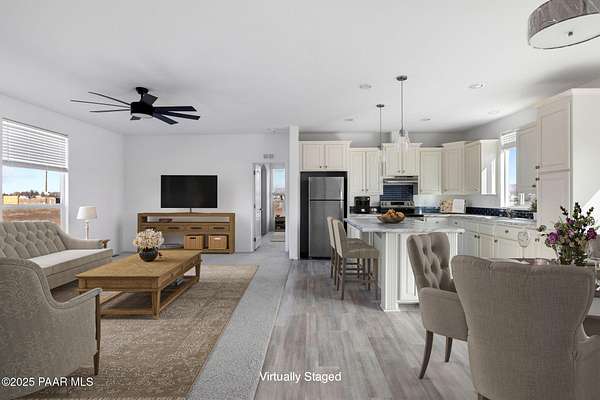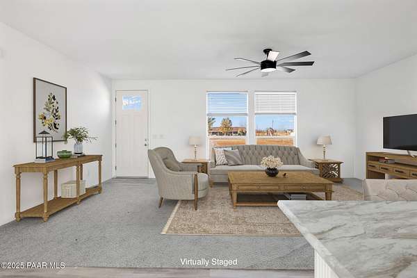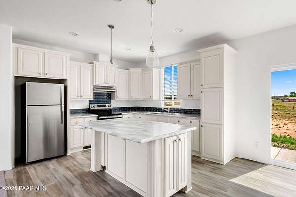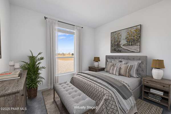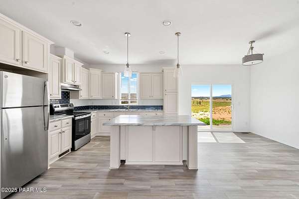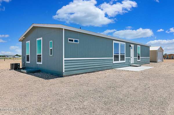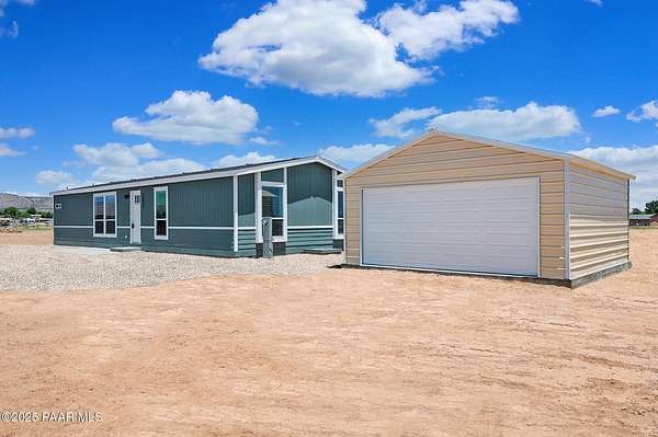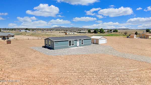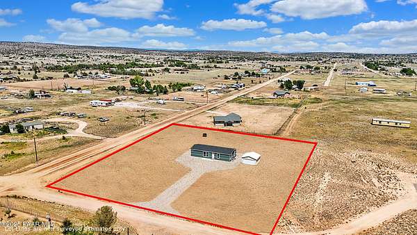 Country Living awaits with this 4 bedrooms, 2 bathroom, 1,600 square foot home on 2.69 acres situated just off of paved roads in the heart of Paulden. Built in 2025, this home is rural living at its best and can be a stunning horse property with a high producing well at 37+ Gallons Per Minute! The open concept of this home makes it airy and bright throughout. The kitchen is a perfect set up with an island and tons of storage. The master bedroom has an attached bath with a double vanity and walk in shower. The outdoor spaces are perfect for taking in the views and all that this great home has to offer. The two car detached garage works well for the avid tinkerer, added storage and for traditional parking to keep vehicles out of the elements! Come see it today and make it your own!