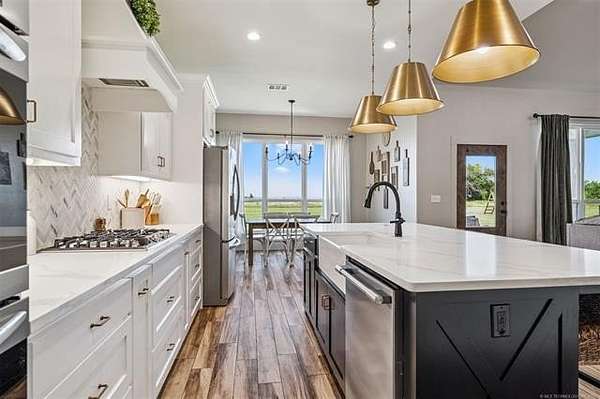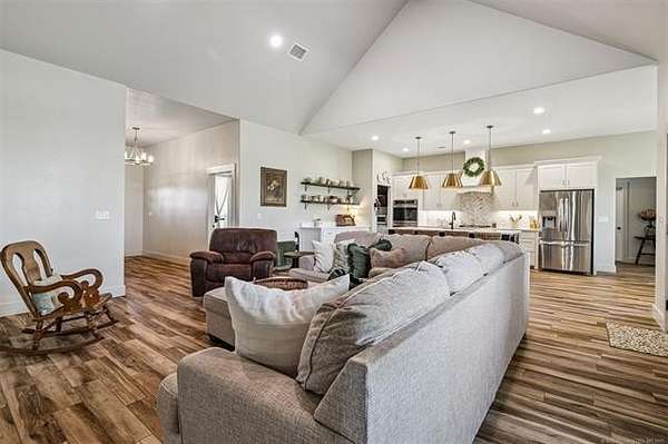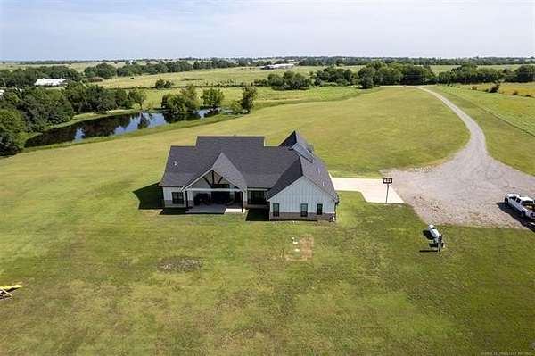 This stunning 5-bedroom, 3.5-bath custom home offers both space and sophistication, featuring a versatile flex/bonus room upstairs that can serve as a sixth bedroom. Set on approximately 13 acres with a serene pond, this property blends peaceful rural charm with high-end finishes throughout.