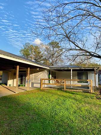 Located just outside the city limits, this home has had many updates and getting ready for its new family. There is a seperate living/dining room and den. The kitchen includes a high-end stainless gas range/oven with vent hood. The primary bedroom has access to a large covered patio with a fenced in area. The laundry room is accessible from both the kitchen area and the covered patio area. The primary bathroom has a large tub and a seperate walk in shower. There is also a double variety in this bathroom. This property has a little bit of everything to offer. The covered parking area is oversized. There is a seperate apartment (guest house) with an open room, full bath and kitchenette area. On the rear of the property is a large building that spans approximately 60x30 on a slab with power that can be used for most anything desired. There is also a beautiful pond that is situated on approximately 2.38 manicured acres.