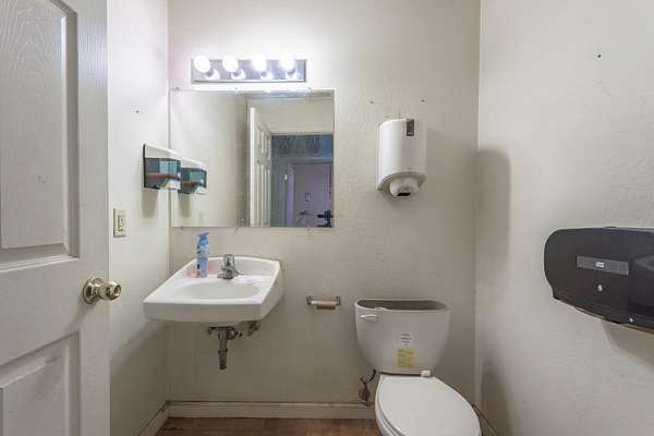 Office Complex: 1,200 sq ft featuring a reception area, breakroom, two bathrooms, and a 12x14 private office. Equipped with GFA heating and air conditioning for year-round comfort.