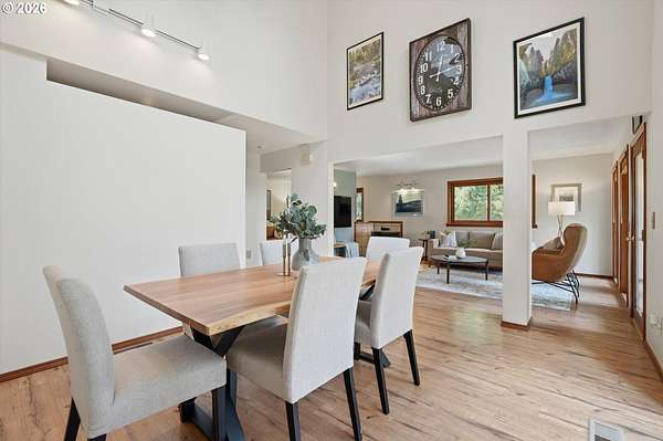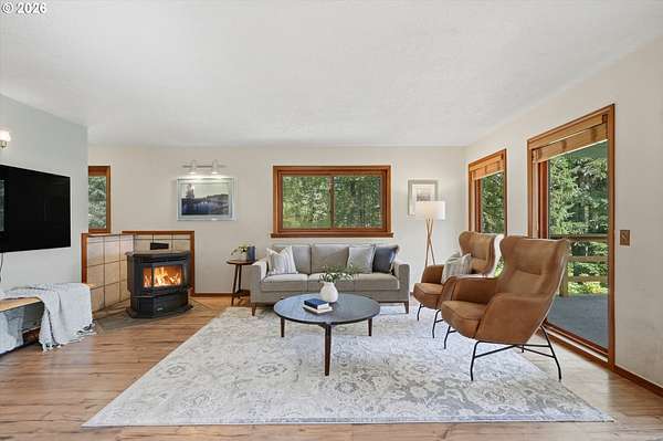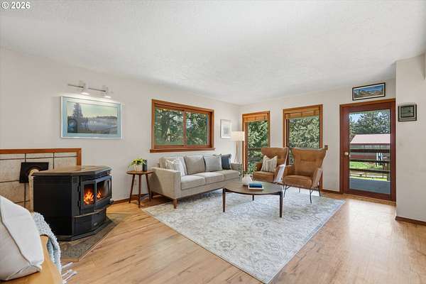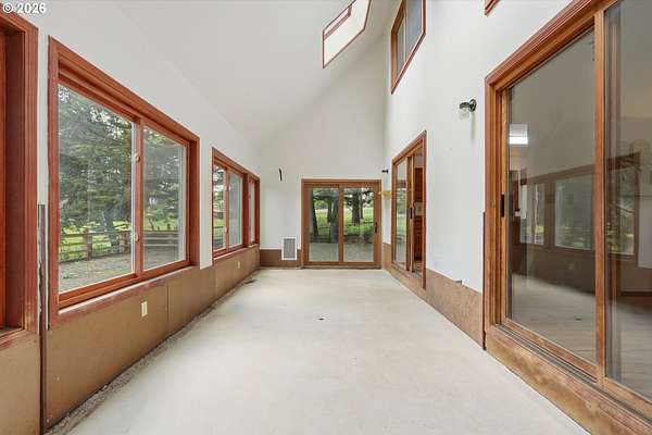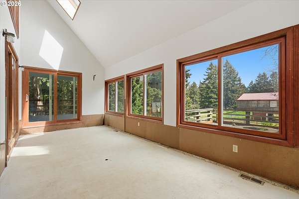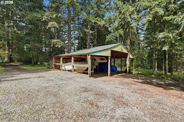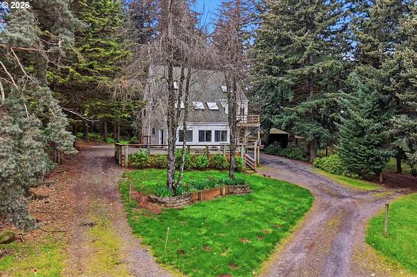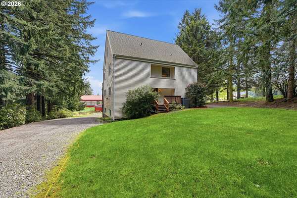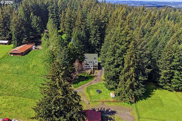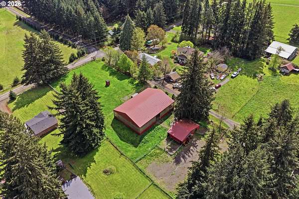 Your dream horse property awaits you and at an incredible price! 5 acres, barn, covered arena, tack shed, hay room & more! Plus room for all your toys with huge covered carport area; perfect for RV, boat, ATV, or horse trailer. Custom built home with laminate floors throughout main level, high & vaulted ceilings, walls of windows for amazing natural light. Warm pellet stove for great energy efficiency. Kitchen & dining room with double sliders out to sun room. Kitchen with eating bar, dishwasher, pantry & range. Laundry/mud room with sink. Primary bedroom with vaulted ceilings, skylights, double closets, updated bathroom with furniture inspired travertine double sinks, updated flooring, updated tile shower. Door leads to private balcony off primary bedroom. All bathrooms updated with new flooring, paint, fixtures, showers, vanities. Updated double pane vinyl wood windows throughout. New carpet with updated pad in all bedrooms. Vaulted office/bonus area. 3rd floor perfect for separate living area with living room and bedroom and 1/2 bathroom. Incredible storage throughout. Only 7 miles outside of Oregon City for great proximity to all conveniences. Live your country dream today! Open House Saturday, 4/18 from 12pm to 2pm.