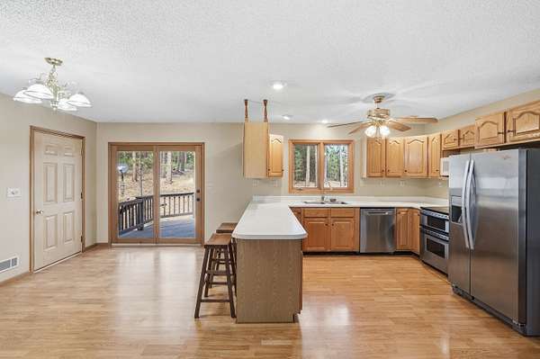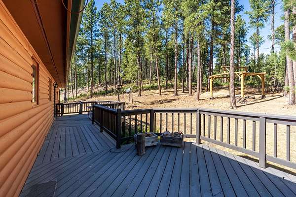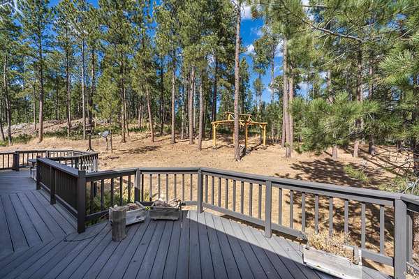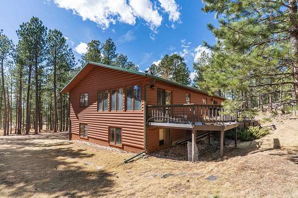 BLACK HILLS HIDDEN GEM - SUPERB LOCATION - tucked among the trees w/exceptional privacy! Set on over 4 Park-like acres, this inviting 5-bed open-concept home w/2-car attached garage is ready to fit your lifestyle. The delightful eat-in kitchen is equipped w/lots of cabinets, plenty of countertop space, newer stainless-steel appliances, wrap-around counter w/stools & a sizeable dining room area highlighting access to an enormous open deck. A sunlit living room is adorned w/a cozy stone-encased gas fireplace. The master suite offers a relaxation haven w/a walkout to the deck. 2 great-sized bedrooms & a full bathroom round off the main. Cozy up the freestanding gas stove in the expansive basement family room. 2 more ample bedrooms + bathroom are also housed downstairs. A large laundry room, abundant storage & a garage workshop add to the home’s functionality. Enjoy the outdoors from both front & back decks or unwind around the firepit. The fenced garden includes irrigation & hail netting, perfect for growing your own produce & a chicken coop is already in place for a true homestead feel. Thoughtfully maintained & updated, the home features a new metal roof, refreshed exterior stain & paint, and a welcoming new front door. Unique touches like stonework sourced directly from the property add character to the fireplaces & entryways. Located just minutes from town & close to iconic Black Hills attractions like Custer State Park, Needles Highway & Sylvan Lake!