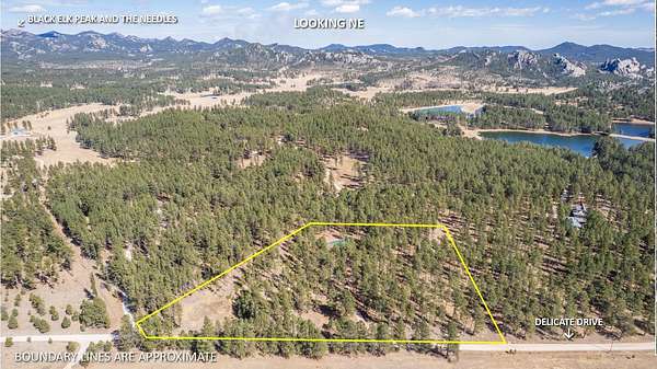 From Hwy 16 east of Custer, head north on Sylvan Lake Rd, head east on Willow Creek Rd, about 3/4 mile turn left onto Tanglewood, then left onto Delicate Dr. Property is on the right.