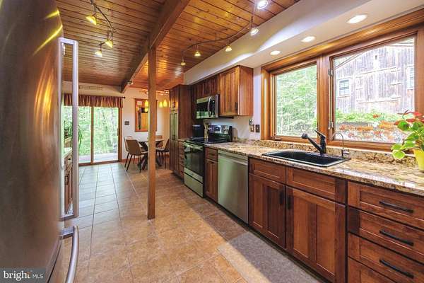 This custom Lindal cedar home sits on a private, wooded two-acre lot and offers a front-row seat to beautiful panoramic views while being filled with abundant natural light. Built with the signature post-and-beam structural system, the house has a warm, spacious, and architecturally distinctive feel that sets it apart from ordinary homes. On the main level, the upgraded kitchen features a breakfast nook and opens seamlessly into a separate dining room, creating a wonderful flow for entertaining and everyday living. Just steps away is a cozy family room centered around a gas fireplace, while walls of windows throughout the home bring the surrounding nature right inside. A convenient main-level laundry room and powder room complete this floor. Upstairs, the primary suite is a true retreat with its own private deck and a connecting full bathroom. Two additional bedrooms share a full hall bath, providing comfortable space for family or guests. The lower level includes a fourth bedroom and rogh in plumbing for an additional bath, along with a large unfinished area perfect for storage, a workshop, or future expansion. Outside, the home truly shines with a multi-tiered deck system that includes wiring already in place for a spa, plus a charming pergola. The grounds are beautifully landscaped with extensive gardens that bring color throughout every season, a peaceful Zen garden, and a welcoming firepit area. The oversized two-car garage offers an internal staircase leading up to a finished loft, ideal for extra storage or a hobby space. Additional thoughtful features include a whole-house water filtration system, reverse osmosis water filter , and a sub-panel wired for an external generator. This home offers true character in a truly special setting!