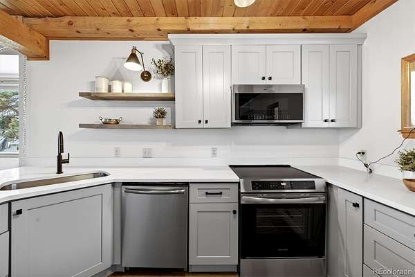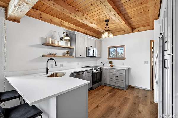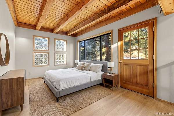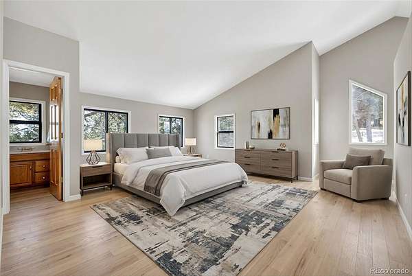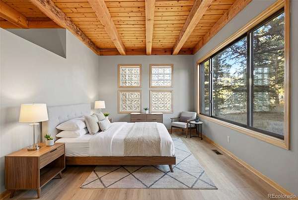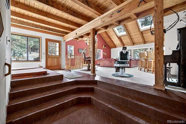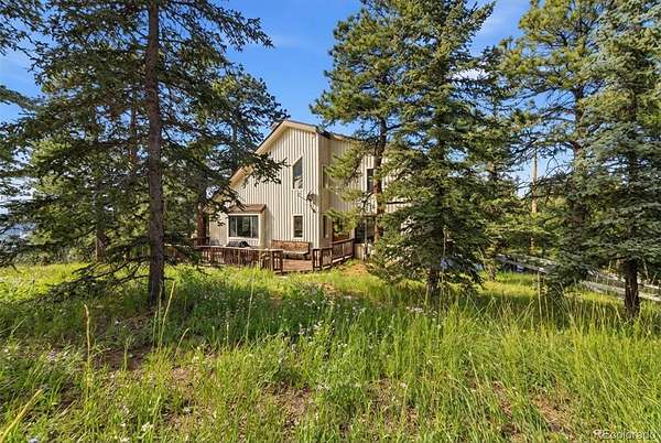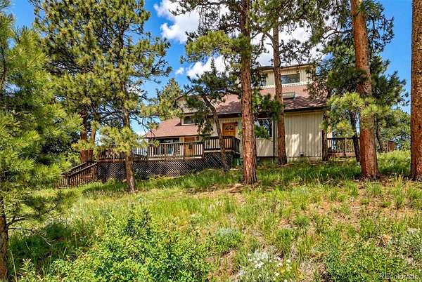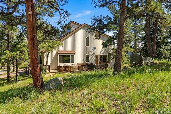 *NEW ROOF & NEW SEPTIC TANK being installed.*Stunning mountain retreat with sweeping views and exceptional privacy.* This light-filled home features an open floor plan designed to capture the scenery from every angle. The kitchen & dining area are anchored by a charming wood stove & feature durable, stylish LVP flooring that flows through the kitchen, dining space, and remodeled main-floor bathroom creating a cohesive & low-maintenance living area. The remodeled kitchen showcases stainless steel appliances, quartz countertops, and modern finishes, while the updated main-floor bathroom adds both style & convenience. The expansive living room offers a dramatic entertainment area complete with a wet bar perfect for hosting gatherings or relaxing after a day outdoors. The primary suite includes a private deck to take in the peaceful surroundings & breathtaking sunsets. Enjoy spa-like amenities with a hot tub & sauna, plus upstairs washer and dryer hookups for added flexibility. The home also offers excellent potential to add one or two additional bedrooms, making it ideal for future expansion. Recent improvements include a new well pump and piping and a newer hot water heater. A $7,500 carpet allowance and $7,500 deck allowance allow buyers to personalize the space to their taste. Surrounded by abundant wildlife & close to miles of hiking trails, this private setting feels worlds away while remaining just 10 minutes from Home Depot & Walmart and only 15 minutes to Lakewood. A rare blend of tranquility, views, and convenience this is Colorado living at its best. Some photos AI enhanced. Some photos are AI generated to show possible additional bedroom configuration. Furniture size and scale may not be accurate. Buyers are advised to independently verify all information, including but not limited to; sq. ft., features, specs, condition, inclusions, taxes, utilities, lot size, permits, zoning requirements, septic system, wells and any specific use considerations.