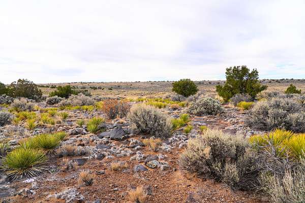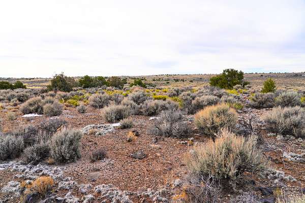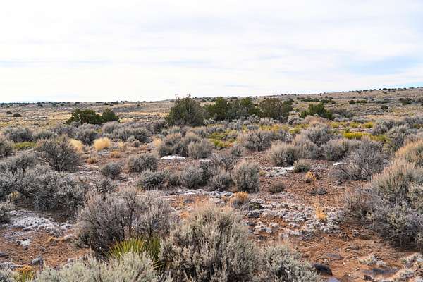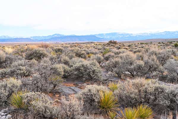 Vegetation includes typical high-desert growth such as sagebrush, yucca, native grasses, and low shrubs. Several natural clearings are present and could be used for parking, camping, or a future building site with minimal clearing. Access to the property is via maintained dirt roads arranged in a grid layout, making the parcel easy to locate and reach by vehicle.