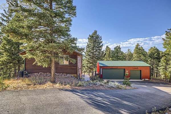 Discover serene living with this charming property featuring two well-maintained, heavily wooded 2-acre lots, offering privacy and natural beauty. The clean, well-cared-for home is complemented by upper and lower level decks, perfect for taking in the picturesque views. Enjoy the versatility of a newer detached 3-car garage/workshop, ideal for projects or extra storage. The main floor primary bedroom offers convenient living, while the cozy wood-burning stove adds warmth and charm. With nearby access to parks and trails, this property provides a peaceful retreat with nature at your doorstep. - Recently updated appliances, heated & covered gutters and granite countertops. Milgard Windows with Lifetime Warranty. *Attached property of 37 Amanda Circle, Florissant 80816 is also for sale by the same owners. Call Max Haddock with any questions on either properties.