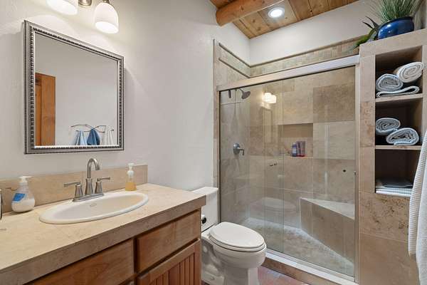 - Beamed Ceilings, Breakfast Bar, Cable Tv, Ceiling Fans, Dual Sinks, Great Room, Main Level Primary, Multiple Living Areas, Pantry, Separate Formal Dining Room, Skylights, Soaking Tub, Walk In Closets