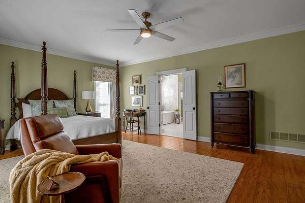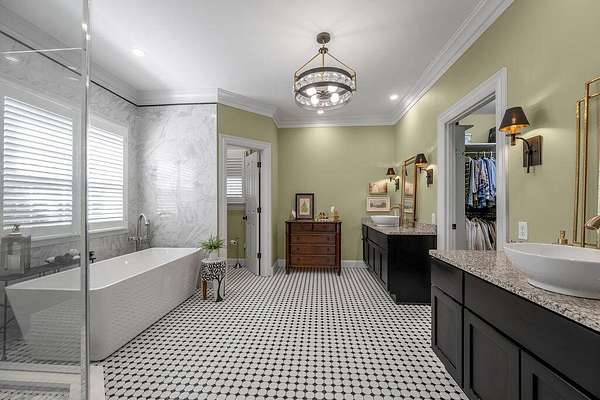 - Breakfast Bar, Ceiling Fan(s), Central Vacuum, Eat-In Kitchen, Entrance Foyer, Primary First Floor, Soaking Tub, Walk-In Closet(s), Wet Bar
