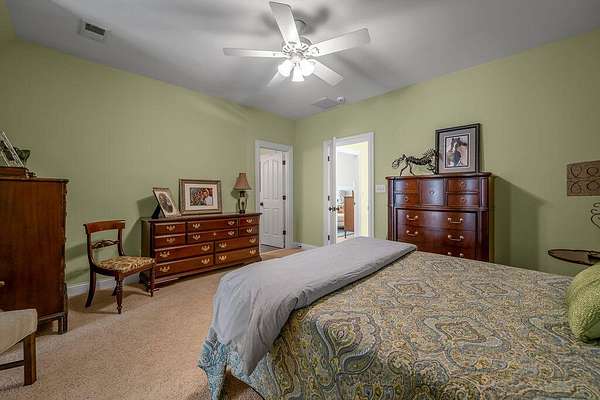 Experience the perfect blend of Southern charm and elegant style in this exquisite home located on the 4th fairway of the Champion Trace Course at Keene Trace Golf Club, a recent host of the Barbasol Championship. This property features a large front porch with stunning golf course views. Inside, discover custom moldings, arched entryways, and an open layout with hardwood floors. The generously sized rooms include a highly desired first-floor owner's suite. Pristine condition! Entertain with ease in the gourmet kitchen equipped with a 5-burner gas cooktop, double ovens, extensive cabinetry, and a cozy sitting area. The home also boasts a large dining room with built-ins, a home office, and a gorgeous Great Room flooded with natural light. Upstairs, find four spacious bedrooms, two full baths, and substantial closet space. The walkout basement offers a theater room with built-in speakers and a screen, recreation space, and a workout room. Complete with a 3-car garage and a private brick courtyard. Hurry!