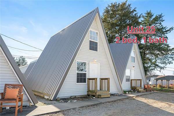 *Six A-Frame cabins, and 5 have been NEWLY REMODELED* Don't miss your opportunity to own 6 A-Frame cabins on 1.6 acres, AND there is room to expand! You could add more units, or RV hookups to boost income. There are 2 one-bedroom, 3 two-bedroom, and 1 three-bedroom cabins with an in-ground pool and laundry facilities on site as well. All major appliances are included and all furnishings and decor are available for extra $$. The property is zoned C2 Commercial, so it could be used as long term, mid term, or short term rental. Located on a popular and quiet part of Table Rock Lake, this property is only 0.4 miles to Baxter Marina, 5 min to Black Oak Mt Amphitheater, 30 min to Silver Dollar City, 35 min to Branson attractions, and 33 min to Thunder Ridge Nature Arena. These are quiet cabins close to the lake, but convenient to all the area attractions! Seller is MOTIVATED, so this property won't last long!