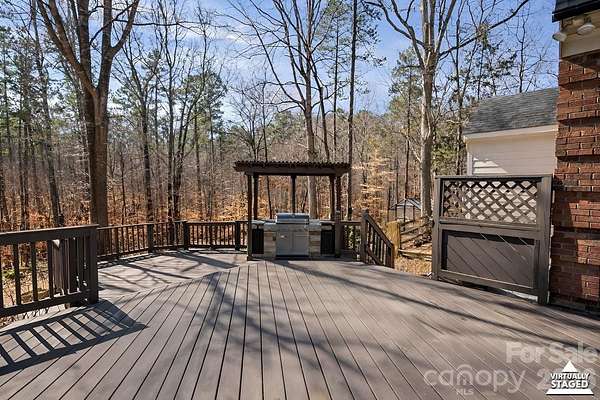 Nestled on nearly three serene, tree-lined acres, this two-story almost all brick home offers an estate-like sense of privacy, exceptional space, and flexible living options. Primary on main with three additional oversized bedrooms, three full baths, and two half baths, there is ample room for everyday comfort and effortless entertaining. The main level features a convenient two-car garage and two primary suites-one on the main floor and another upstairs-perfect for multi-generational living or long-term guests. An updated chef's kitchen opens to an inviting enclosed sunroom, and rich real hardwood floors run throughout the home for a warm, cohesive feel. Additional highlights include a dedicated media room with theater setup, generous bonus and flex space with a mini kitchen, and a peaceful bi-level deck overlooking the beautiful grounds, ideal for relaxing, dining, or hosting gatherings. Spring will greet its new owners with dahlias, primroses, knockout roses, rose trees, daffodils and hostas.