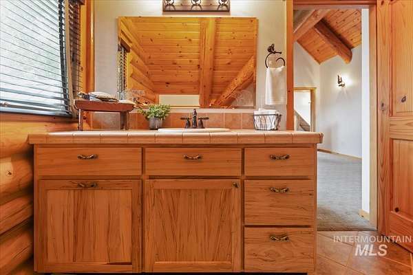 Located on 2.89 Acres in Crosstimber Ranch, this custom log home offers million-dollar views & quality craftsmanship throughout. A custom brass-inlaid front door welcomes you into the entryway, where you're immediately greeted by stunning log features. The great room features lodge pole pine accents, a wood-burning fireplace, and a wall of windows leading to the wraparound deck. The open kitchen and dining area include granite counters, maple cabinets, and a walk-in pantry--great for everyday living or entertaining. The main level primary suite includes a double vanity, walk-in closet, and peaceful views. Downstairs offers a spacious bonus room with a custom wet bar, an additional bedroom & bath, and a 15' x 22' workshop with double doors to the outside. Upstairs features a loft office, 2 more bedrooms & a full bathroom. A 5th, bonus room, bedroom has its own private deck. Enjoy stargazing by the fire pit area. Plenty of space for your cars& toys in the oversized garage with an addition bay on the lower level.
