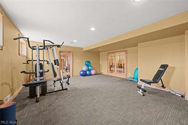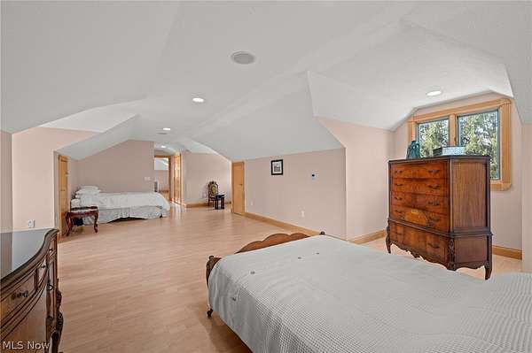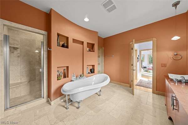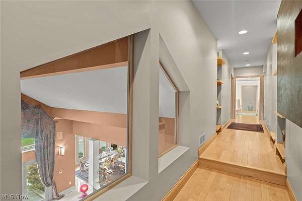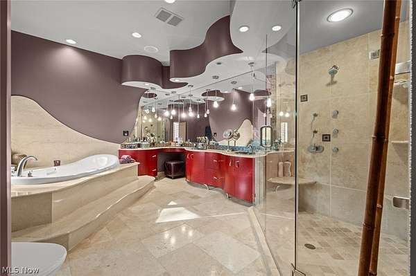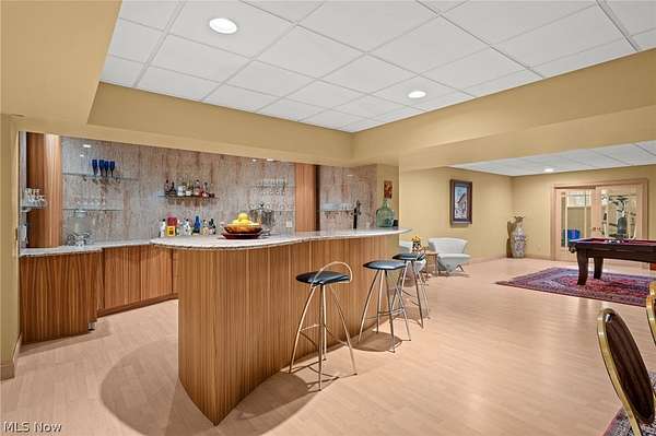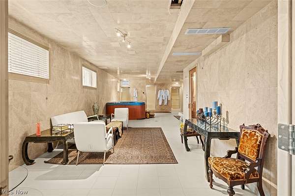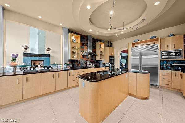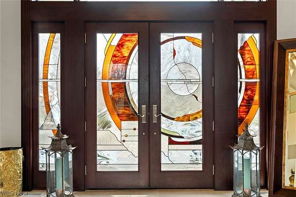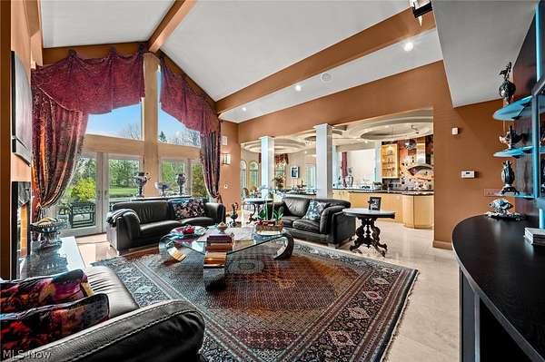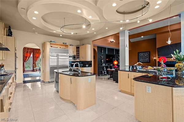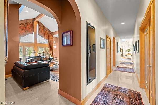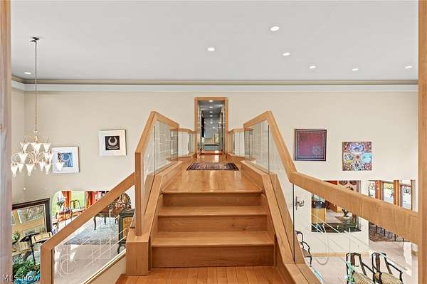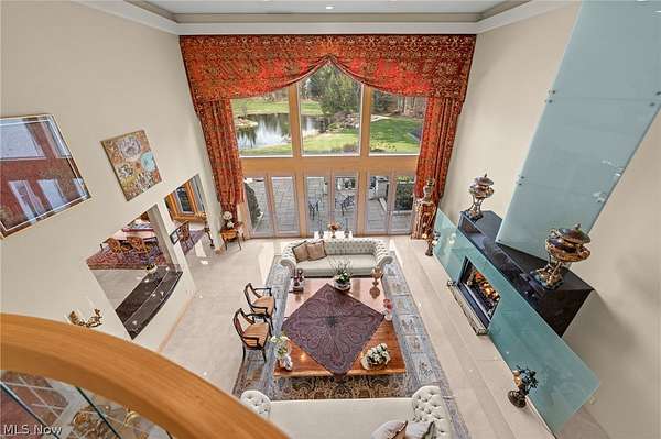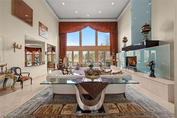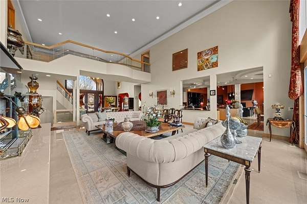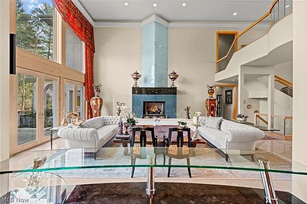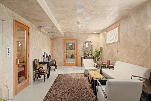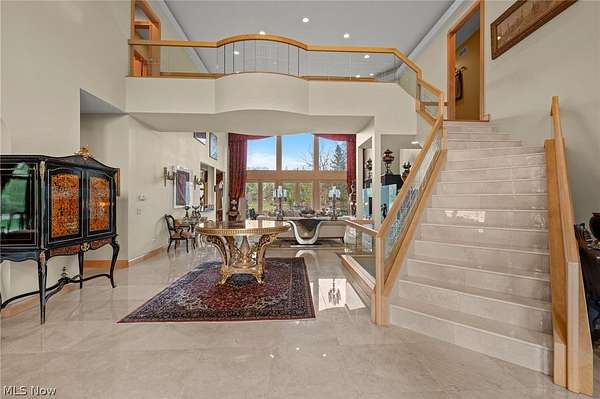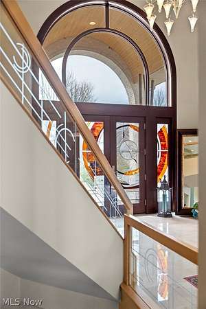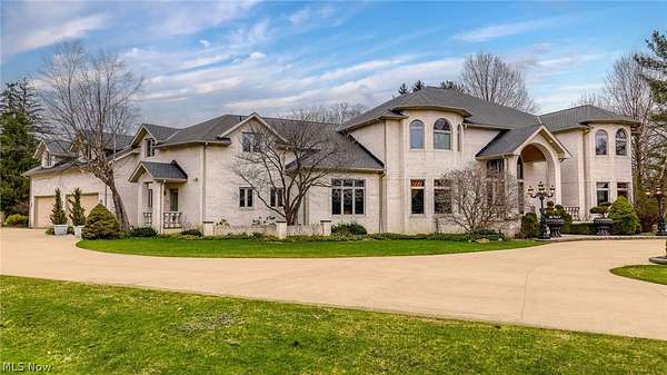 Situated on a beautiful private cul-de-sac in Moreland Hills, this luxurious estate sits on 2.7-acre estate embodies refined living with amenities and craftsmanship rarely seen. An expansive foyer area introduces the home's impressive scale, opening into a spectacular great room anchored by a soaring two-story custom fireplace. An entire wall of bespoke glass doors extends the living space outdoors, unveiling a magnificent 1,700+ sq. ft. stone terrace that wraps gracefully around the back of the home, an extraordinary setting for entertaining, dining, or simply enjoying the serene natural surroundings. The primary level continues to impress with a formal dining room, a private office with custom built-ins, and a gourmet kitchen featuring heated floors and an adjacent hearth room that radiates warmth and comfort. A fully equipped second kitchen, complete with its own appliances, enhances convenience and adds valuable functionality to the home. The first-floor primary suite serves as a luxurious retreat, offering a spa-inspired bath rich with custom details and design. Upstairs, four spacious bedrooms, each with its own bath, are complemented by an expansive loft and a remarkable bonus room, providing versatility for relaxation, work, or play. The lower living level is a destination of its own, offering over 2,500 sq. ft. of exceptional living and entertainment space. A beautifully crafted wine cellar, a walk-behind wet bar, and a full gym set the stage for elevated living. The complete spa suite featuring a sauna, steam room, hot tub, and multiple showers, creates a private wellness escape reminiscent of a luxury resort. Located in the esteemed Orange School District and just minutes from the vibrant heart of downtown Chagrin Falls, this residence invites you to discover its uncompromising quality and craftsmanship firsthand-a must-see home where architecture, design, and luxury come together to make a powerful statement.
