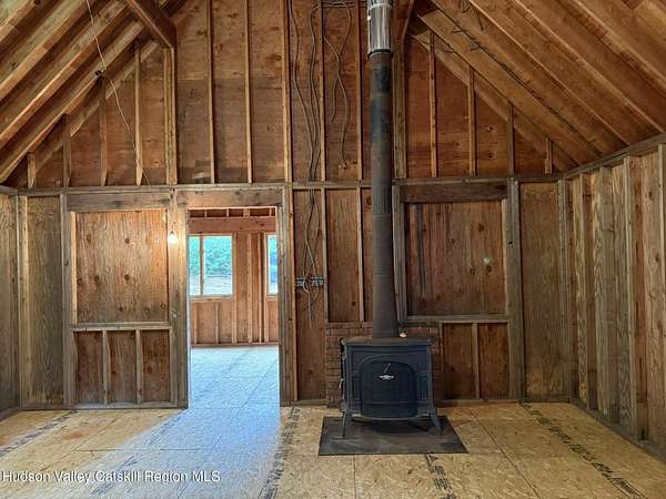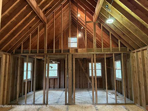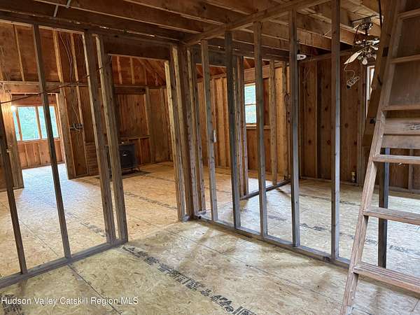 Set on 8.9 picturesque acres, this property provides the ideal foundation for your next vision. With electric, a drilled well, and a new septic system already in place, the fully gutted structure is ready for your inspired plans. Structurally sound and ready for completion! This home has been inspected and certified by a local engineering firm, confirming its solid structural integrity and readiness for interior finishing. A new subfloor has been installed throughout, and the septic system has been fully repaired and updated in 2025. Financing is readily available through a construction or renovation loan-cash offers are not required. The property has also undergone extensive clearing and cleanup, creating beautiful open spaces and enhanced views all around. Beautifully positioned on 8.9 private acres along a quiet country road, this property offers the perfect blend of privacy, natural beauty, and potential. The existing 800-square-foot home (plus an additional loft space not included in the square footage) is stripped to the studs and ready for a complete renovation, a true blank canvas awaiting your creative touch. The home features cathedral ceilings, adding wonderful volume and natural light to the space, as well as a full basement that offers additional room for storage. A Vermont Castings wood-burning stove adds warmth and character, setting the tone for the cozy country retreat this home can become. The property is equipped with a drilled well and a newly installed septic system, along with on-site electric service and an existing meter box, providing a solid foundation for future renovation and construction. Outdoor enthusiasts will appreciate the property's natural beauty with meandering trails and pathways throughout the land. Perfect for peaceful walks, quiet exploration, and fully immersing yourself in the serene surroundings. The land offers seasonal mountain views, and with selective clearing, there is potential for year-round vistas. Included with the sale is a complete set of construction plans, providing a clear roadmap for renovation. A recommended local contractor familiar with the property is also available to assist if desired. For those looking toward the future, the property may offer the possibility to subdivide with Town approval, giving added flexibility and value to this unique offering. Whether you envision a modern country escape, a rustic cabin retreat, or a creative reimagining of the existing structure, this property provides the setting and groundwork to make it a reality. A rare opportunity to create your dream home or private getaway in a peaceful Hudson Valley location.