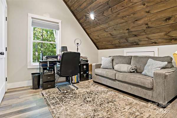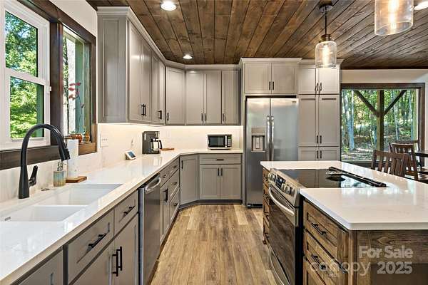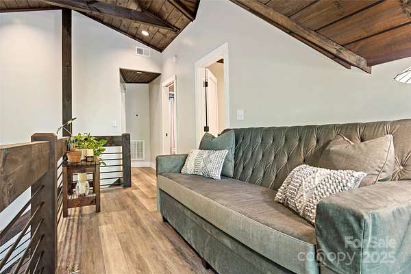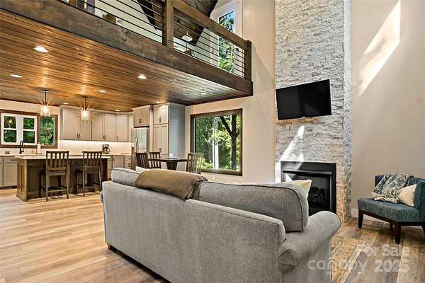 Mountain Modern at its finest! This exceptional, custom-built home blends rustic charm with contemporary elegance on a private 1.70-acre lot in the gated community of Grandview Peaks. Designed for peace, privacy, and a strong connection to nature, this home invites you to relax on the covered front porch surrounded by mountain beauty. Step inside to an open-concept great room and kitchen with stunning finishes and thoughtful design. The main level offers a half bath, mud/laundry room, and a spacious primary suite with a spa-like ensuite. Upstairs, an airy loft with its own balcony makes the perfect office, reading nook, or lounge, alongside two bedrooms and a full bath. Grandview Peaks offers a community lake, pavilion, recreation area, and walking trails-plus short-term rentals are allowed, making this a fantastic vacation home, investment property, or private mountain retreat. Conveniently located between Marion and Morganton.