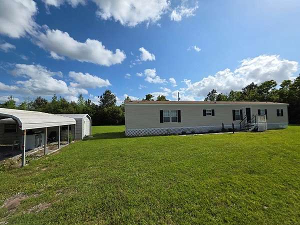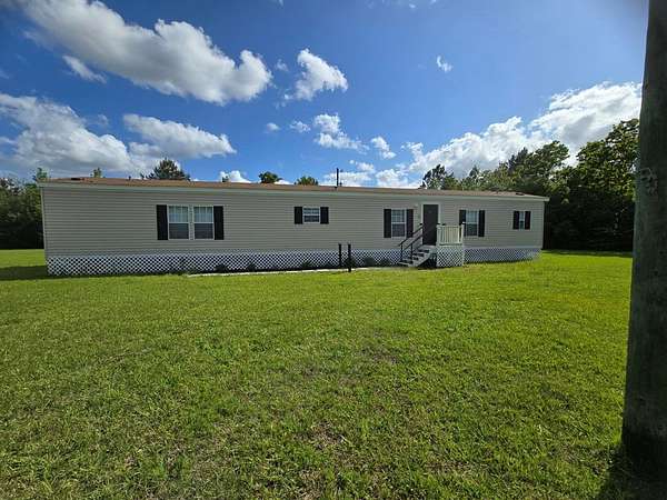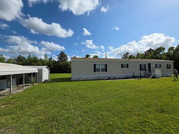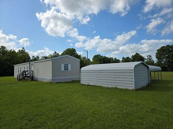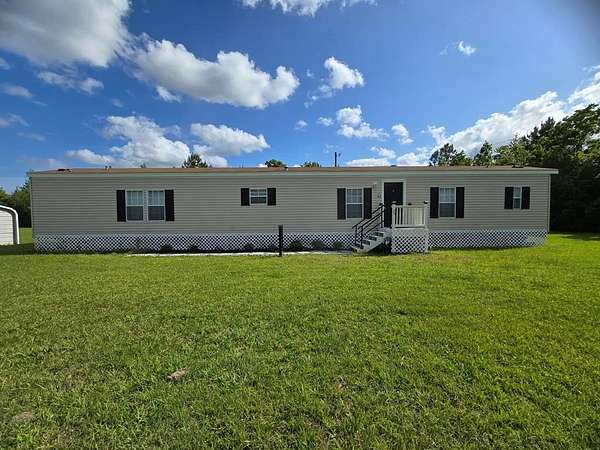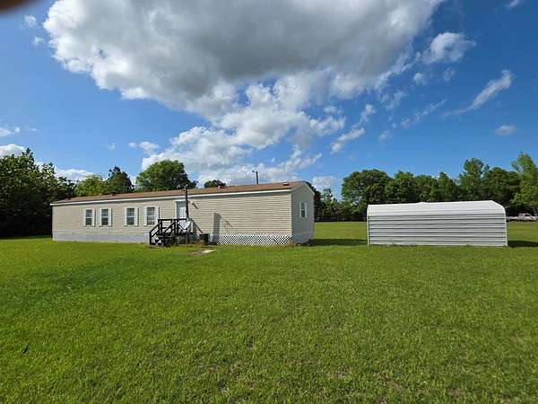 Move-in Ready Home on 1.79+ Acres. This spacious, clean, well-maintained Mobile Home includes lots of natural light, kitchen appliances: refrigerator, range, dishwasher & countertop microwave; newer front porch entry & rear stairs w/ landing & a unique utility room/laundry. You enter this space thru cabinets in the kitchen. Washer & Dryer stay with the property. Storage galore in the kitchen and dining areas: cabinets, extended built-in's & open shelves for displaying your favorite decorations. Main Bedroom has an ensuite Bath w/ dual sinks, plenty of counter space, sunken tub for relaxation, separate shower & walk-in closet. Main living area is open to the dining area & kitchen which gives you plenty of living space. The cook is never excluded from the activities. *Deed Restrictions with this property: No subdivision of the Land & No additional mobile homes may be placed on this property.* Survey has been completed. Shed & Carport stay w/property. Pre-Qualified Buyers. Call for appt.