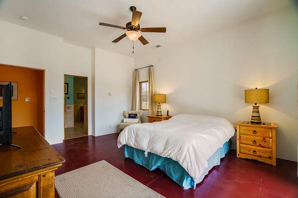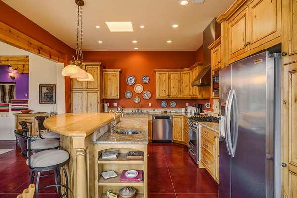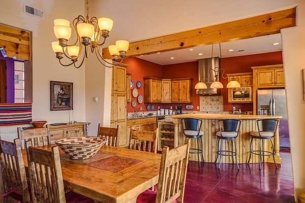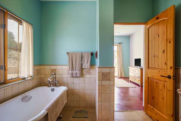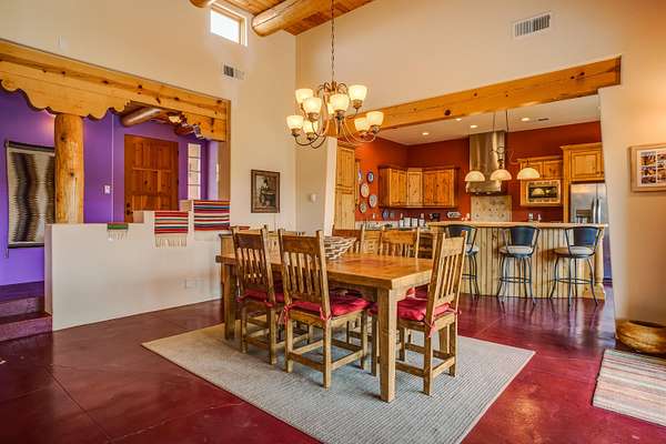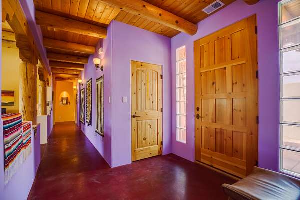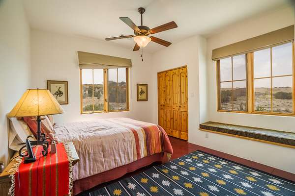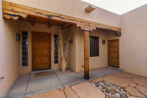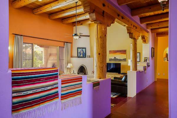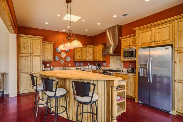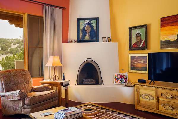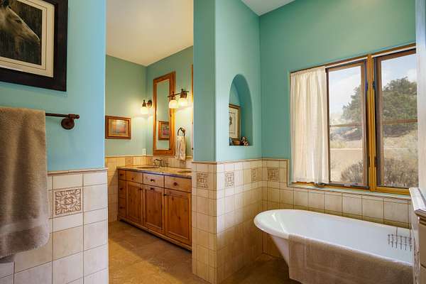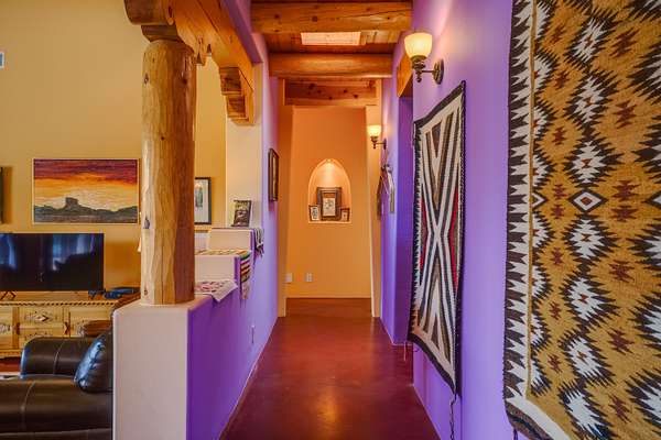 Charming Placitas Bungalow with Great Views on 1.91 Acres! Lovely Southwestern Architecture & Accents with Vibrant Colors, Nicely Accented by Oxblood Red Concrete Floors - No Carpet! An Abundance of Wood Vigas, Corbels, Columns, & Tongue in Groove Details are Complimented by the Warmth of Metal Clad Wood Casement Windows. Wonderful Natural Light from Numerous Windows, Well-Placed Skylights, & North Facing Clerestories. Open Kitchen with Lots of Counterspace plus Spacious Island with Prep Sink. Knotty Alder Cabinetry & Granite Throughout. Refrigerated Air with Forced Air Heat plus In-Floor Radiant Heat. Central Vac & Oversized 2-Car Garage with Space for Workshop or Storage. All Appliances & Ooma VOI Phones Convey! Willing to Sell Furnished. All Furniture & TVs are Available & Negotiable.
