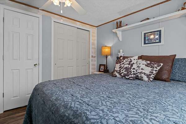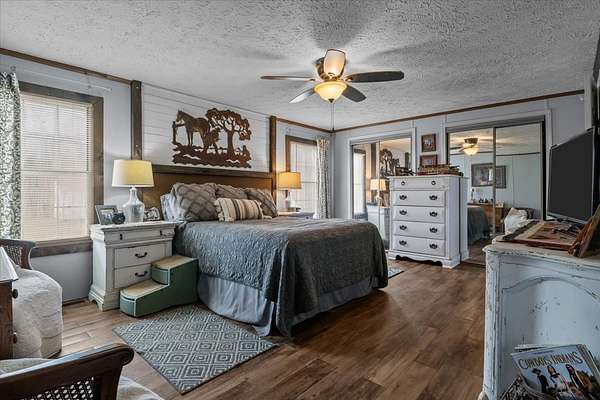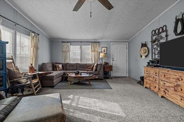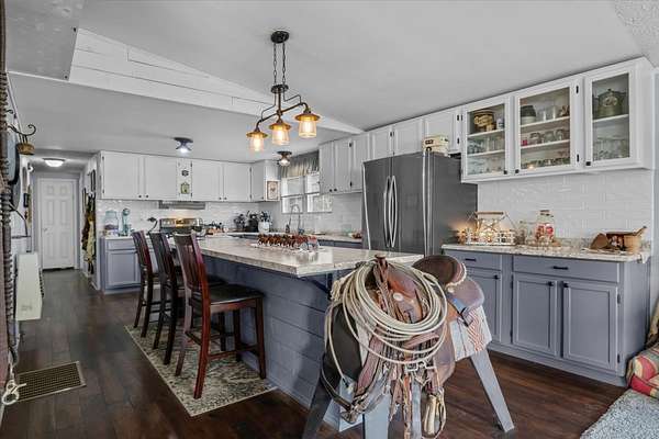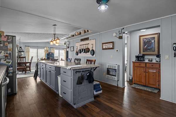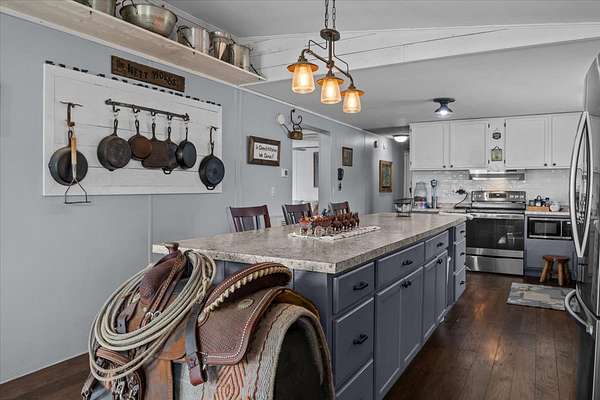 Inside, the home on a permanent foundation is ranch style and spacious. You'll love the enormous 11-foot kitchen island, updated stainless steel appliances, and the efficiency of the smart-controlled wood pellet stove. With walk-in closets, built in storage, and plenty of space, it's move-in ready. Whether you are looking for a permanent farm or a place to land while you build a custom estate in the back pasture, this property offers endless possibilities.