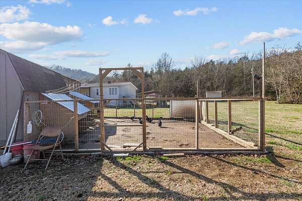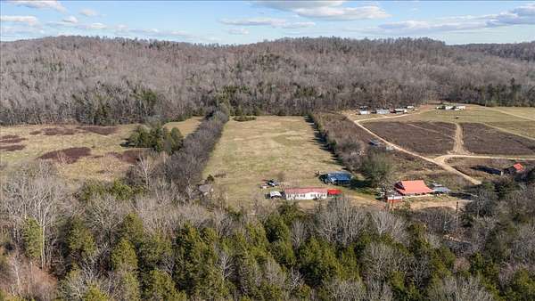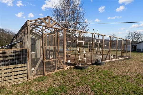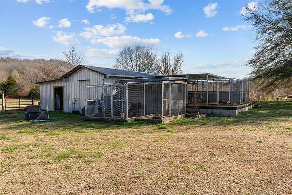 The property is loaded with outbuildings: a 3-bay 30x40 horse barn (w/ electric & water), pole barn, chicken coop, and two 8x12 storage sheds. Nature lovers will appreciate the creek in the front yard, the mature hardwoods (timber value), and a dry pond area with indications of a natural spring.
