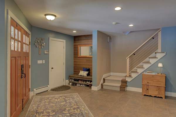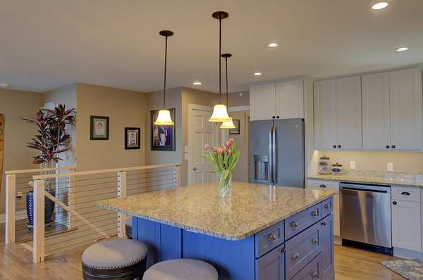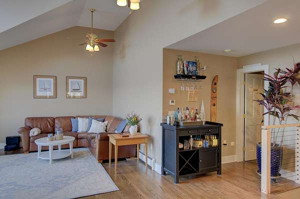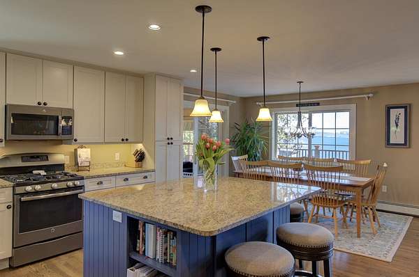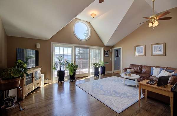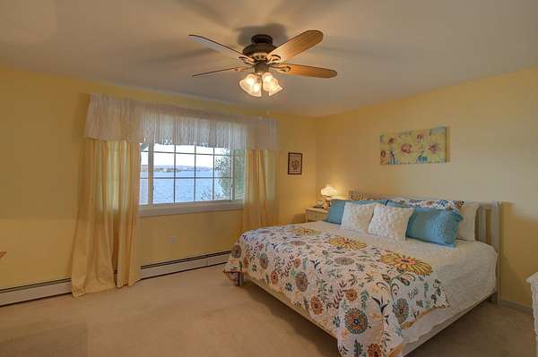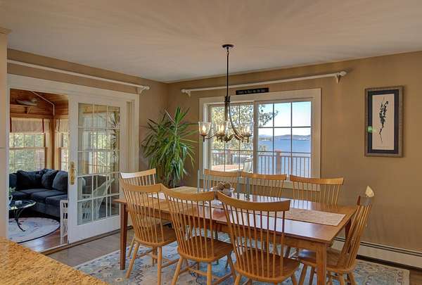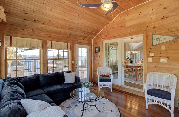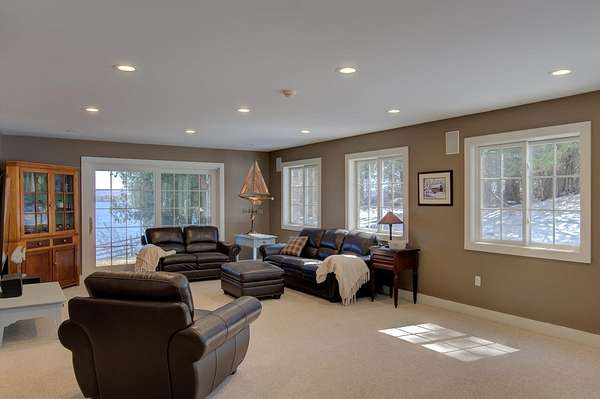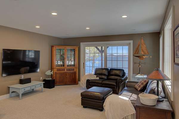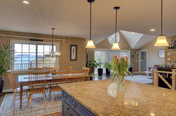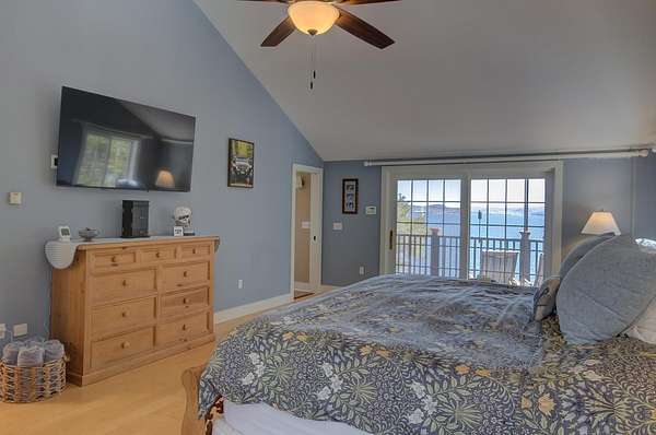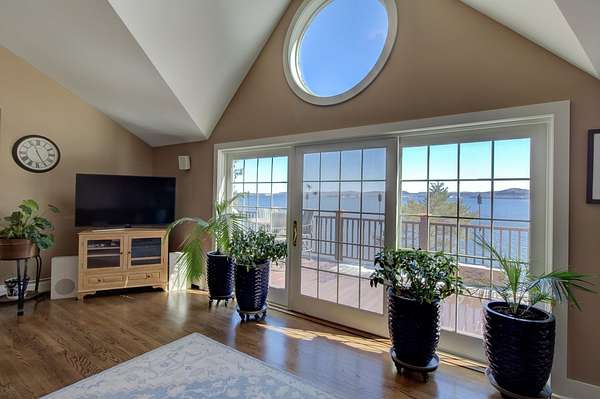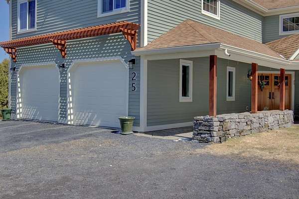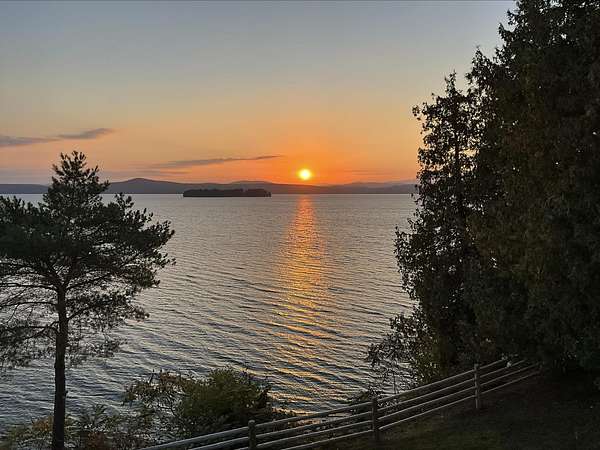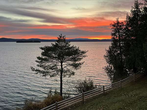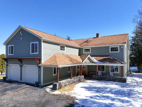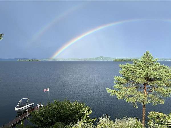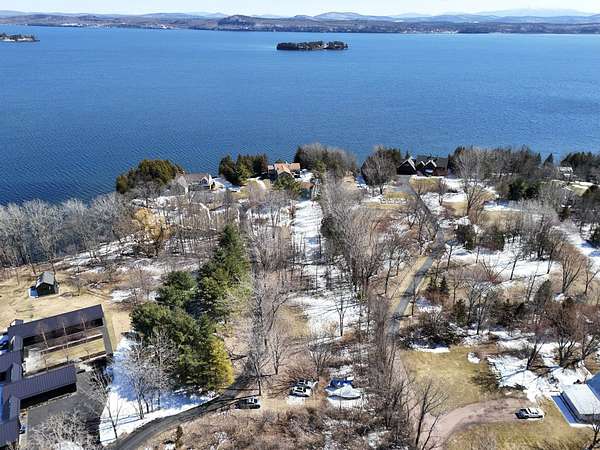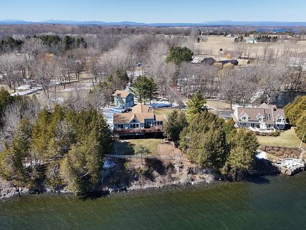 Located on sought-after Kibbe Point, this stunning two-story contemporary island home sits on 2.75 private acres with 249 feet of pristine Lake Champlain shoreline. Designed to embrace its natural surroundings, the home features a bright open-concept great room with hardwood floors, stainless steel appliances, granite countertops, white cabinetry, and a large center island—perfect for entertaining. Expansive windows and sliding doors lead to a full-length lakeside deck offering breathtaking panoramic views of the lake, surrounding islands, and distant mountains. Enjoy year-round comfort in the 4 season sunroom with warm buttery pine walls, radiant heat and an LP gas fireplace for cozy evenings. The spacious primary suite boasts vaulted ceilings, large custom walk-in closet with built in drawers and shelving and an elegant ensuite bath with large double vanity, walk-in shower w/ custom tile work and double shower heads. There are two nicely appointed spacious bedrooms on the second floor and a walk in pantry. The lower level features a 15 x 29 ft family/media room with radiant heat, built-in surround sound system and sliders to access the lake. This level also includes another guest room with ensuite 3/4 bath and a dedicated office with lake views with sliders to a private patio. After a day out on the water fire up the grill and hang out with the crew at your Tiki Bar overlooking the lake, islands and mountains. Recent improvements include a new roof, freshly painted interior and exterior, new mini-split heat pumps with A/C. Looking for a space for projects and storage for all your lake gear? The 24 x 36 detached garage is heated and insulated and includes a 2nd floor shop space and 1st floor workout room. Deep-water access makes this the ideal property for boating, swimming, and lakeside living. Peaceful, private, and well-appointed—this exceptional home offers the perfect blend of modern comfort and natural beauty, a convenient 20 minute drive from Burlington.