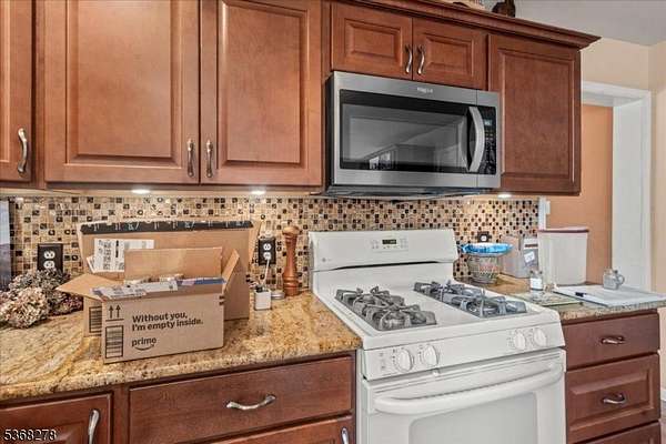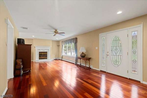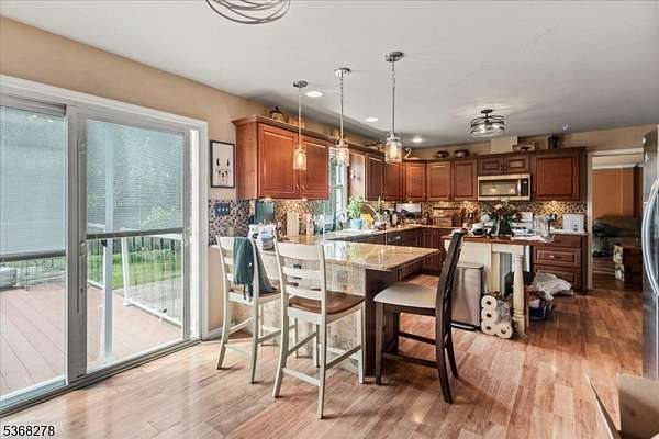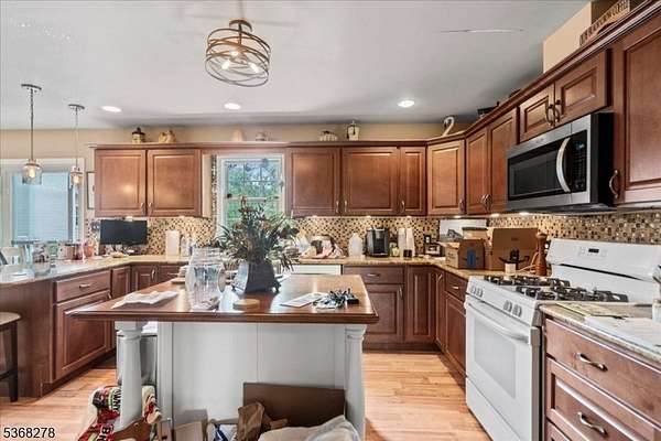 This beautiful Colonial-style home offers the perfect blend of comfort, functionality, and location. With 5 generously sized bedrooms, 3 full bathrooms, and 2 half baths, this spacious residence is ideal for both everyday living and entertaining. Hardwood floors run throughout the main living areas, enhanced by crown molding, recessed lighting, and plenty of natural light. The expansive living room is warm and welcoming, while the breezeway features a cozy pellet stove that adds character and charm. The main kitchen includes built-in cabinetry, ample prep space, and a lovely eat-in area. A second kitchen with direct deck access offers extra flexibility for hosting and entertaining. Upstairs, the primary suite features a full bath with a tub, stall shower, and generous closet space. Additional bedrooms are bright and well-sized with ceiling fans and large windows. The unfinished basement is ready to be customized. Outside, enjoy a large fenced backyard, gazebo, and tranquil wooded views. A 2-car attached garage and a great location just 15 minutes from Main Street Warwick home to shops, eateries, wineries, apple picking, and the Warwick Drive-In make this home a must-see!