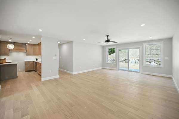 Step inside this stunning NEW CONSTRUCTION RANCH and prepare to be impressed! From the welcoming stone entryway to the wide plank wood floors flowing throughout,every detail has been thoughtfully designed. The primary suite offers a light filled retreat with a walk in closet and a spa like bath featuring a glass shower with rain head and double vanity. The kitchen shines with rich wood cabinetry, a center island, and a large pantry, while the separate dining room feature stylish glass barn doors for added versatility. Two additional bedrooms plus a BONUS room provide space for guests, hobbies or your dream office.Outside, relax on the paved patio overlooking peaceful wooded views in beautiful Barrington.Ready to move in! Agent Interest