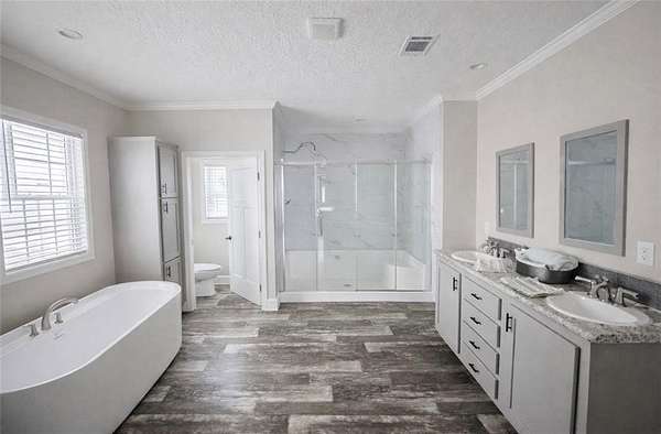 Est $1,398/moComing Soon! Brand new 32x62 mobile home direct from the factory, estimated to arrive and be fully set up in January. This FHA-friendly home offers 1,720+ sq ft with 3 bedrooms and 2 full bathrooms, featuring beautiful neutral colors and high-end finishes throughout. The primary suite includes a freestanding soaking tub and a spacious walk-in shower. Enjoy outdoor living with a covered front porch and a 10x10 rear deck. The property includes a private well and septic system and sits on approximately 2.02 acres in a peaceful rural setting, offering space, privacy, and modern country living.
