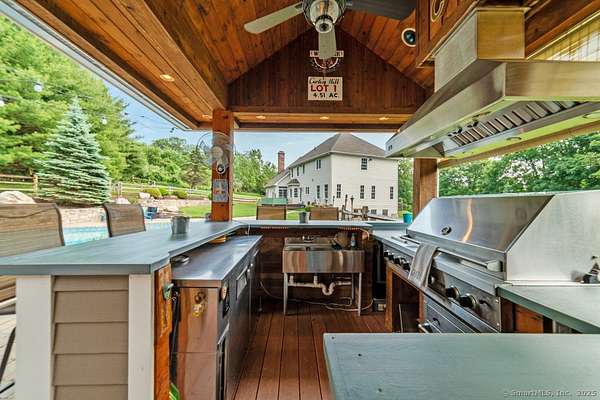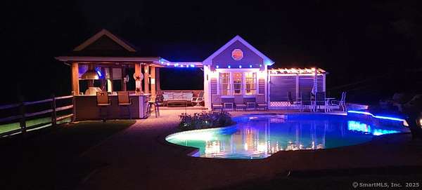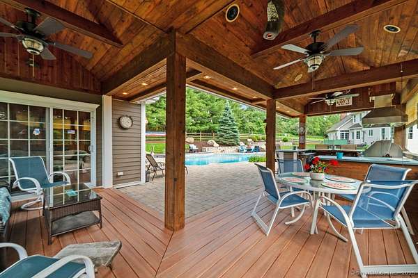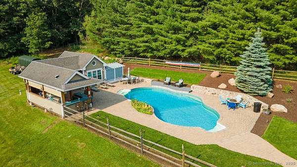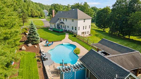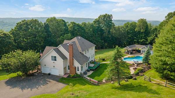 Live your best life in Woodbury, CT, where charm, history, and natural beauty intertwine! The "Antiques Capital of CT", with a picturesque Main Street, historic homes, festivals, and scenic preserves. Imagine living in the heart of this idyllic setting! This 2005 home, on 4.5 acres, is meant for life, living, and entertaining. Upstairs, you'll find 4 generously sized bedrooms and 3 well-appointed bathrooms; 2 of which are ensuite, along with a convenient laundry area. On the main floor, there are living, dining, and family rooms, a half-bath, study, a dinette, and kitchen. There is a large attic and a bright walkout full basement which is partially finished with all walls and future rooms fully framed. Step outside and be amazed by the 40' in-ground heated pool, a spectacular custom-built pavilion and pool house with living-space, loft, a half bath, and a glorious outdoor shower. The star of the show is the full outdoor Viking kitchen & bar. Providing unforgettable experiences for gatherings of any size; Simple dinners or awesome larger celebrations! The expansive grounds offer the perfect mix of level terrain and picturesque hills, for outdoor fun in every season. Swimming, ATV, ball games, sledding and much more! 25 Curtiss Meadows is a camp-like getaway for close ones and friends and an immensely profound and treasured home for its residents. This gem is an absolute must-see. Don't miss the opportunity, schedule your private showing today and begin your next chapter