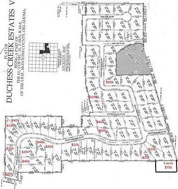 I40 east from Checotah, take exit 270 and turn right onto Texanna Rd Head south approximately 11 miles to the T and turn left onto New Texanna Rd Continue east about 9 miles and turn right onto Black Haw Mtn Rd. Look for Duchess Creek Estates sign, turn left. Property will be 4th on your left *Most lots are numbered
