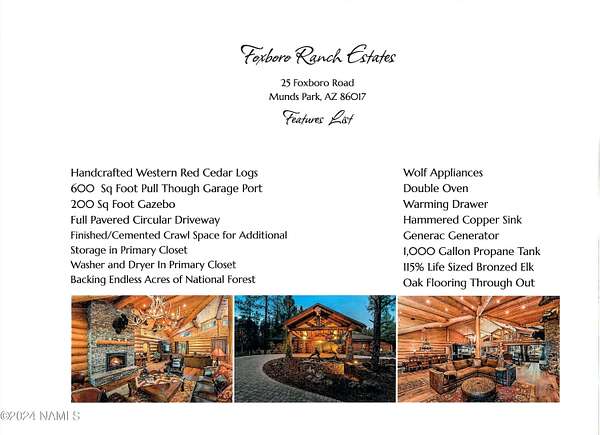 From Flagstaff: Head South on I-17 for 22 Miles, Take Exit 317, Turn Right on Foxboro Ranch Rd and continue until you reach the gate leading in to the development. From Anthem: Head North on I-17 to Fox Ranch Road. Go Left to the gate- Must have gate code with confirmed showing.