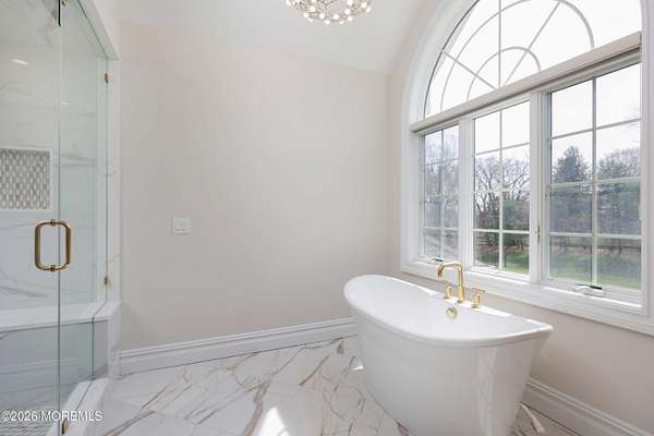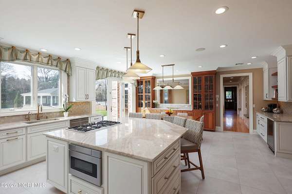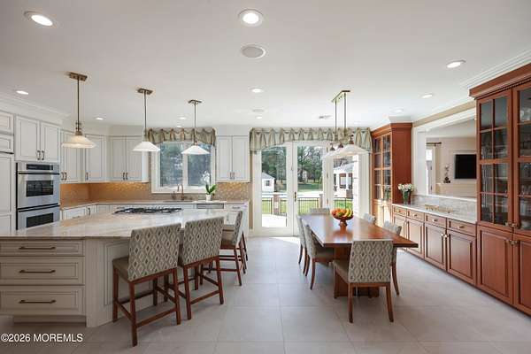 Exceptional Luxury Living on 2.6 private acres. Discover this stunning ~7,000 sq. ft. residence- beautifully updated and move-in ready. It features five bedrooms and five and a half baths. The versatile first-floor layout includes an expansive kitchen, multiple formal and casual living areas, a library, and an office. With both a full bathroom and a powder room on the first floor, this home is designed to offer additional flexibility as your lifestyle evolves. Upstairs, you'll find a luxurious primary suite, updated bathrooms, spacious secondary bedrooms, and a bright, airy 800 sq. ft. bonus room with a layout that can adapt seamlessly to suit your lifestyle. The fully finished 3,500 sq. ft. lower level includes a gym, theater, wet bar, and a full bathroom--perfect for entertaining. Enjoy true resort-style living with an enormous raised stone patio, a pool, a stand-alone hot tub, a lighted tennis/basketball court, a grand pavilion, and expansive, level grounds. Radiant-heat floors and hot-water baseboard heating. 9'+ ceilings all 3 levels. Generator. Top-rated schools. Prime commuter location. Floor plans available.